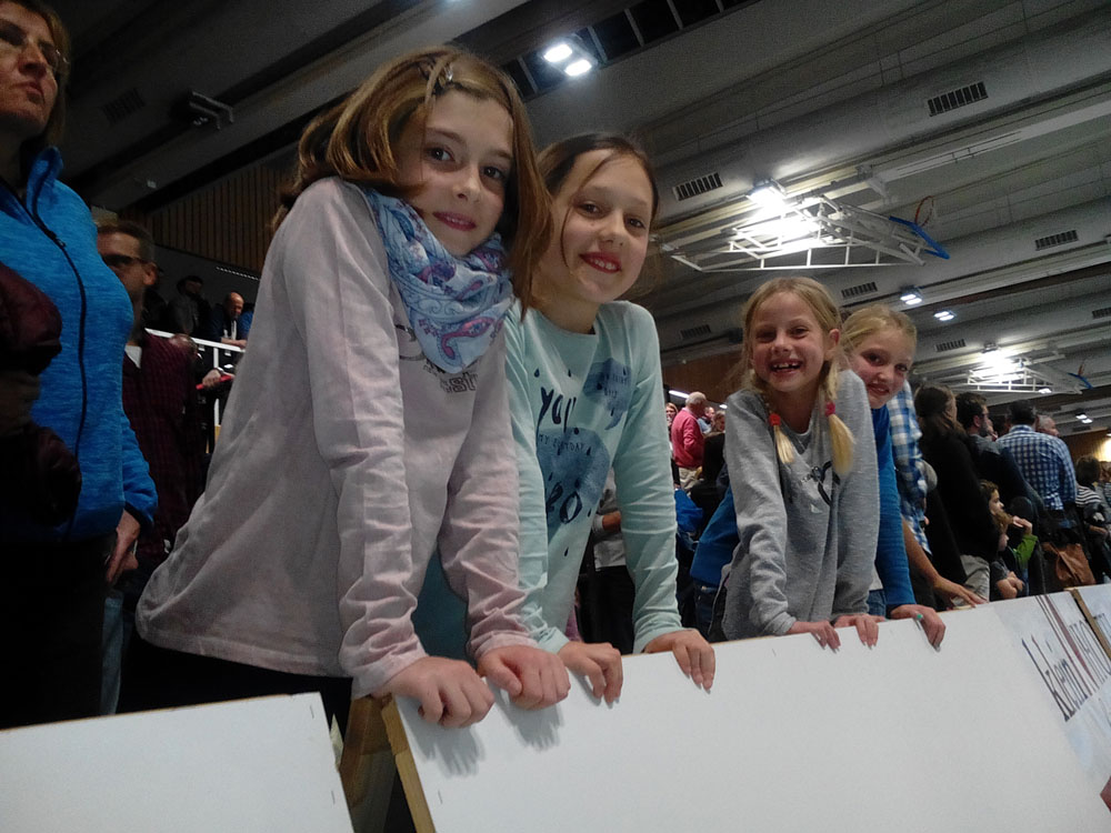 Turnkinder des TV 05 Wetter unter den Zuschauern beim Heimwettkampf der KTV Obere Lahn gegen den TV Schwäbisch Gmünd-Wetzgau am 22. Oktober 2016 in Marburg. |