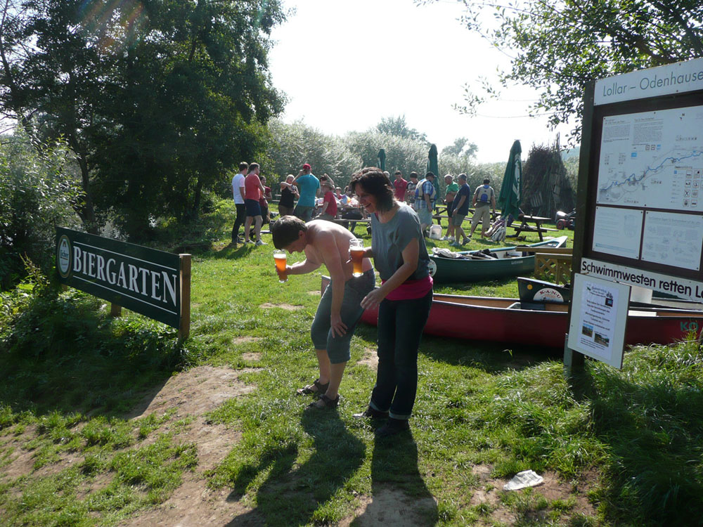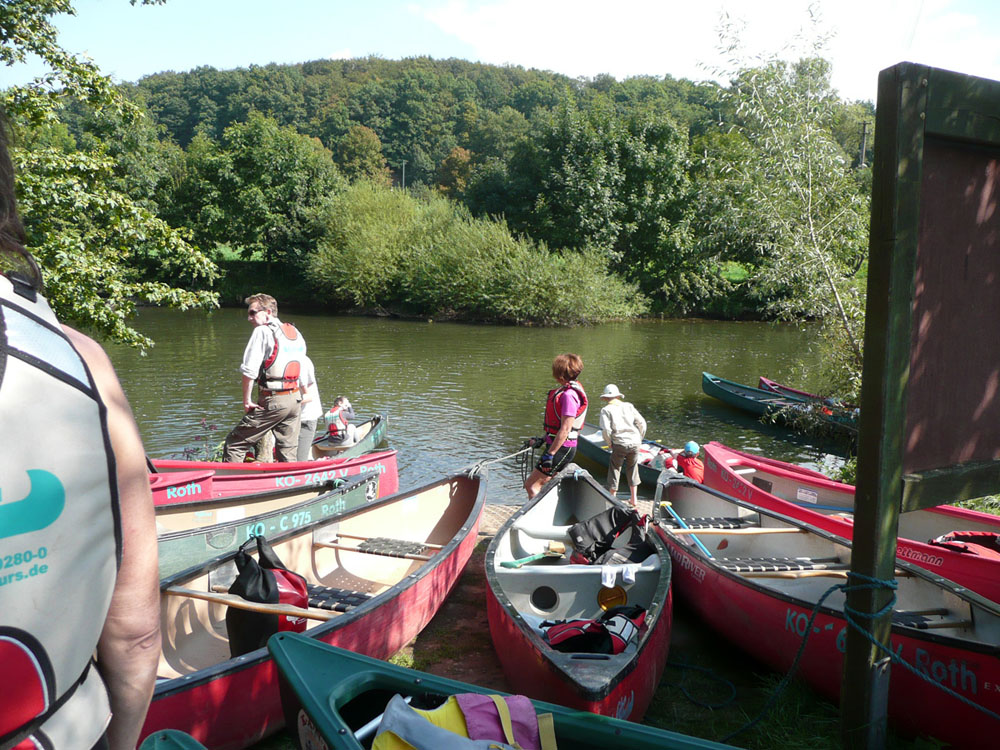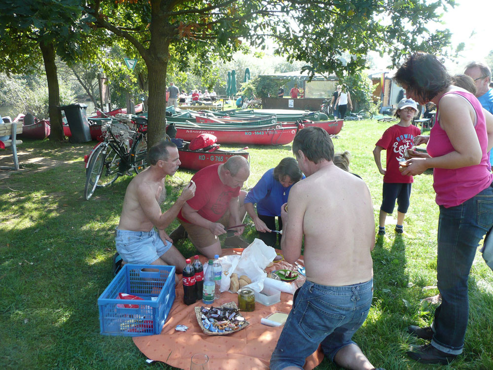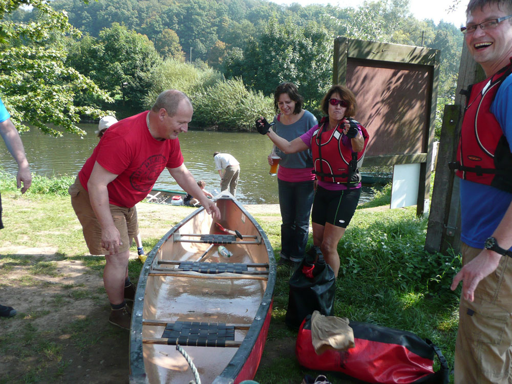 Aufgeteilt war die Gruppe auf vier Boote. Die Besatzung eines Bootes musste leider wegen Fehlern des Steuermannes (frau) das Boot während der Fahrt auf der Lahn verlassen. Während die anderen drei Boote schon am Rastplatz angelangt waren, beschäftigte sich die Besatzung des gekenterten Bootes mit dem Auffischen der verloren gegangenen Utensilien.