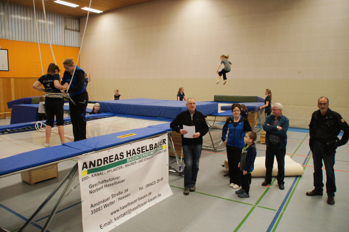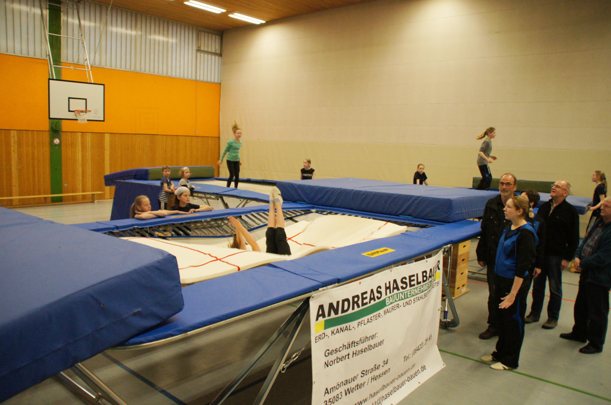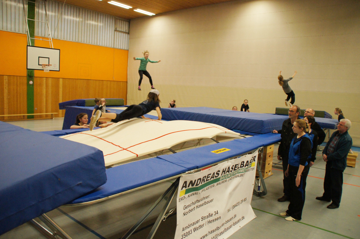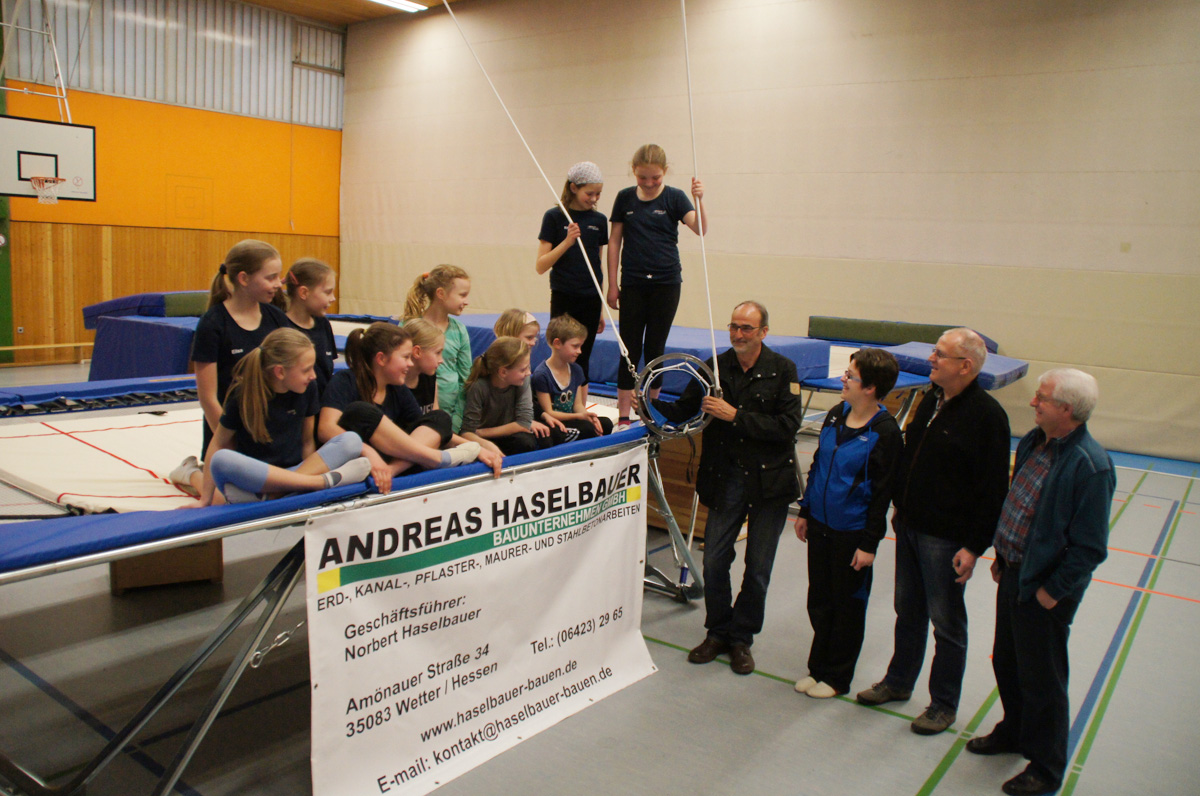 Mit der Spende der Firma Andreas Haselbauer in Höhe von 2.000 € konnte der Turnverein für die Trampoliner einen Schraubensalto-Gürtel sowie eine Icepad-Spezialmatte anschaffen. Mit diesen Hilfsmitteln wird das Einüben von neuen, schwierigen Sprüngen erleichtert. Die Kinder hatten sichtlich ihren Spaß damit!