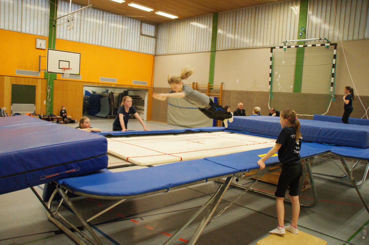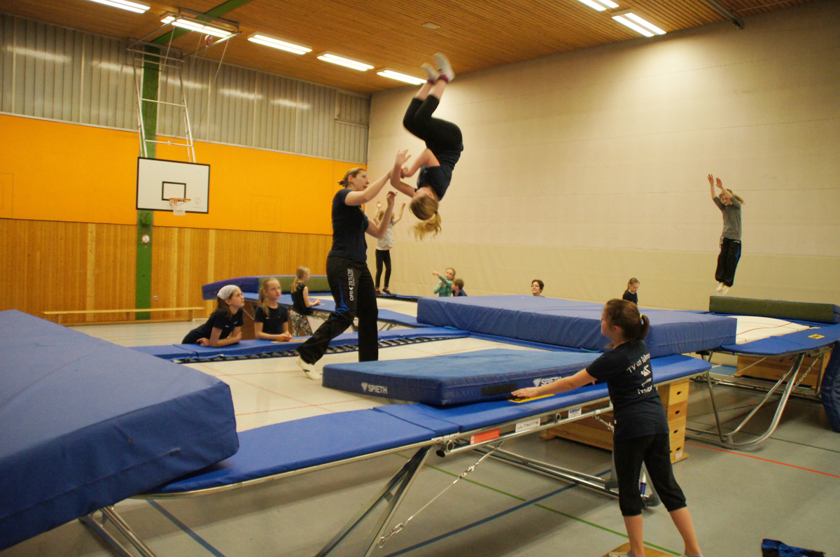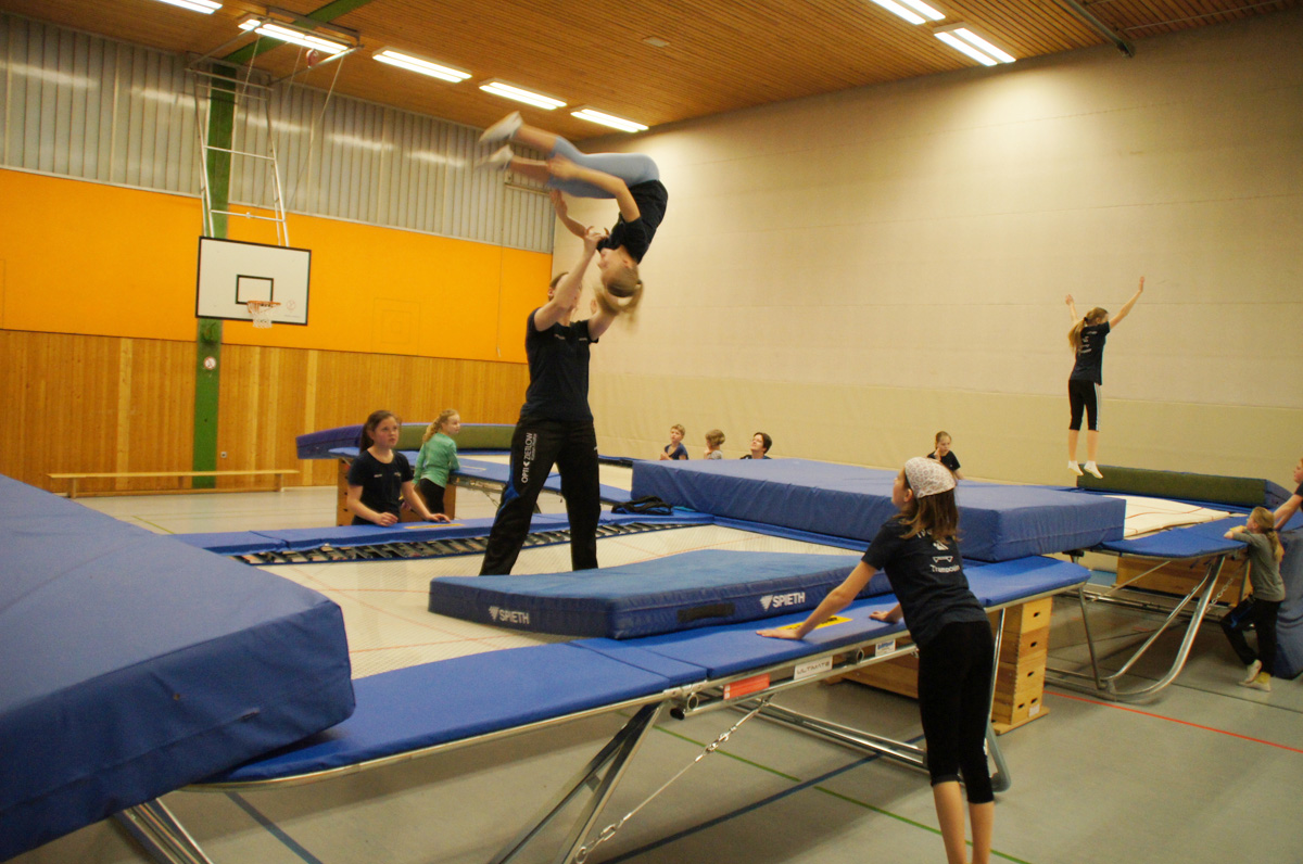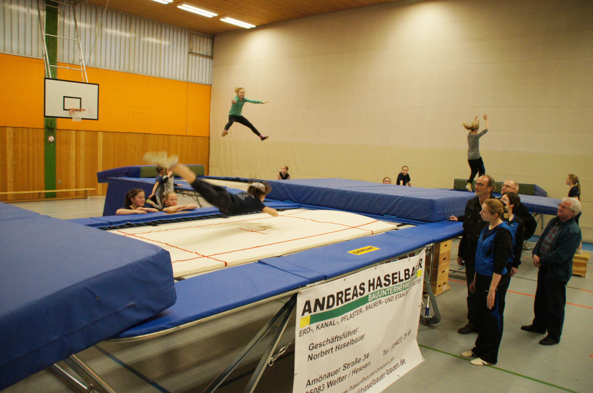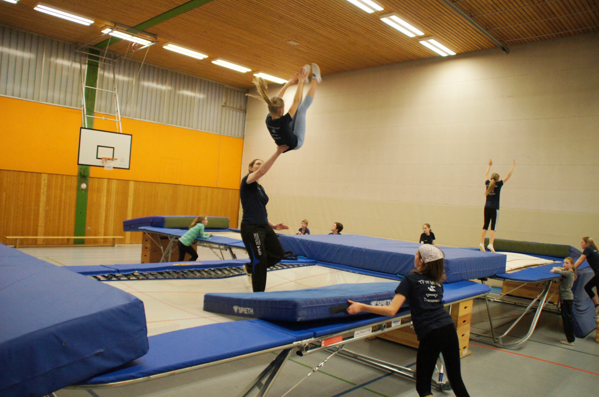 Mit der Spende der Firma Andreas Haselbauer in Höhe von 2.000 € konnte der Turnverein für die Trampoliner einen Schraubensalto-Gürtel sowie eine Icepad-Spezialmatte anschaffen. Mit diesen Hilfsmitteln wird das Einüben von neuen, schwierigen Sprüngen erleichtert. Die Kinder hatten sichtlich ihren Spaß damit!