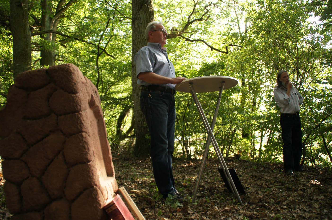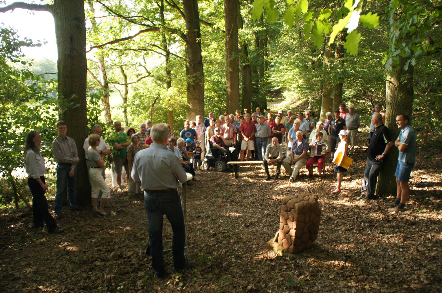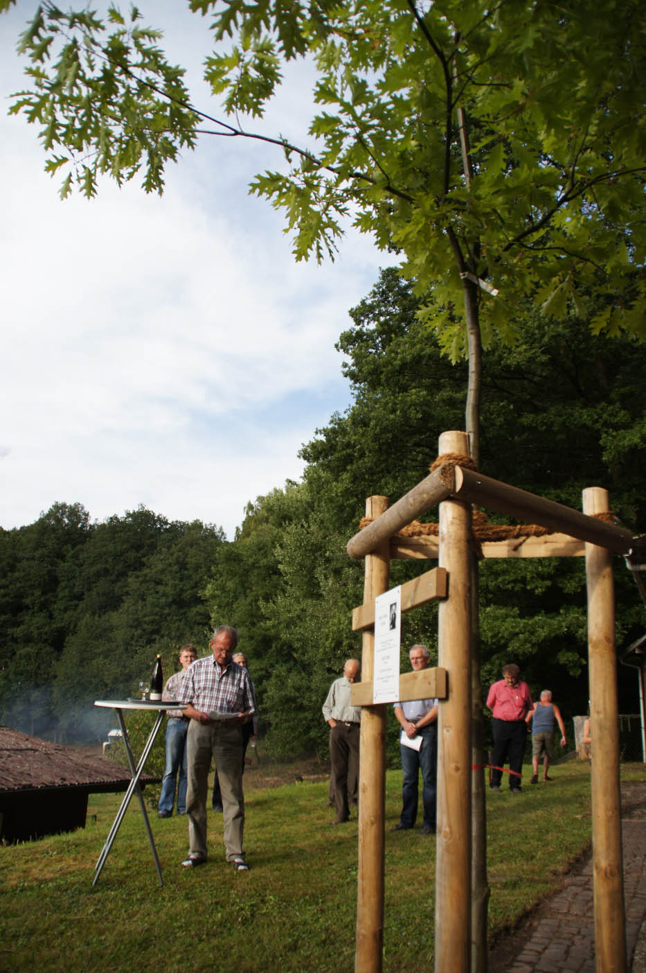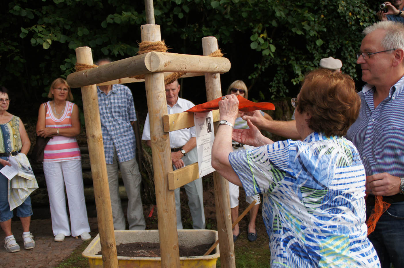 Dann enthüllten Karl-Heinz Kajewski und Lore Junk gemeinsam die Gedenktafel an der Karl-Junk-Eiche,