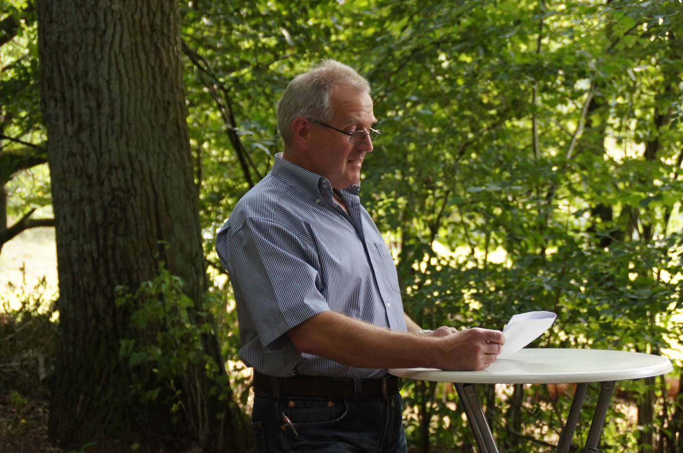 Unter den Jahneichen versetzte zunächst der 1. Vorsitzende Karl-Heinz Kajewski die Gäste in die Zeit von 1913, als die Turner des noch jungen TV den Weg zum Festplatz zu den Hügelsbirken mit Eichen bepflanzten und diesen Platz dem Vater der Deutschen Turnkunst Jahn widmeten.