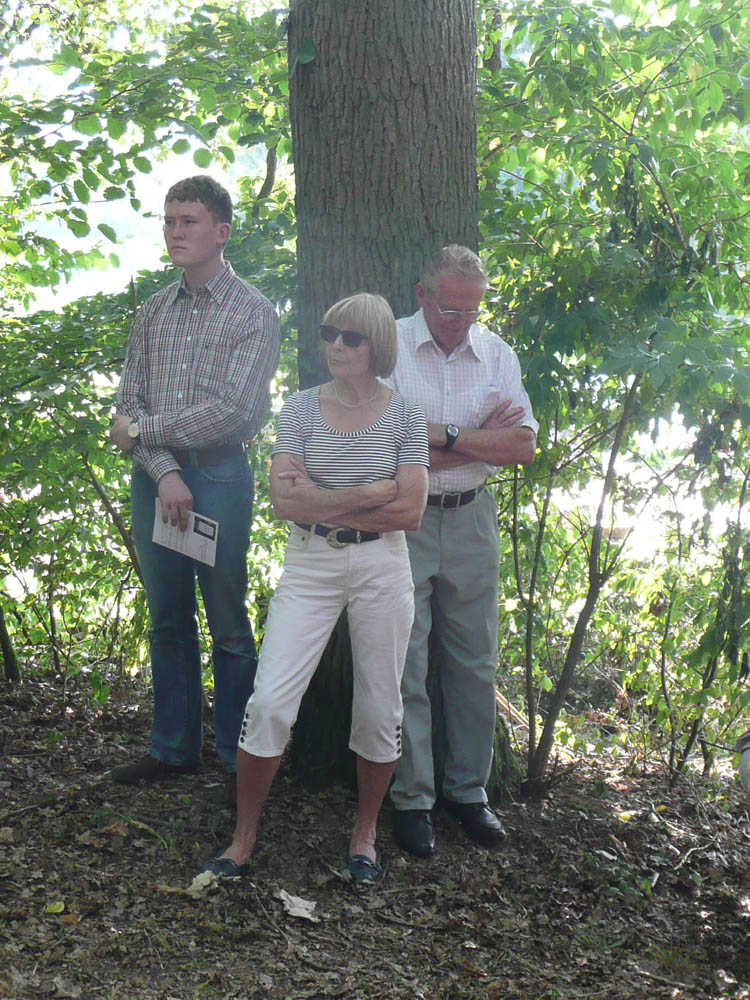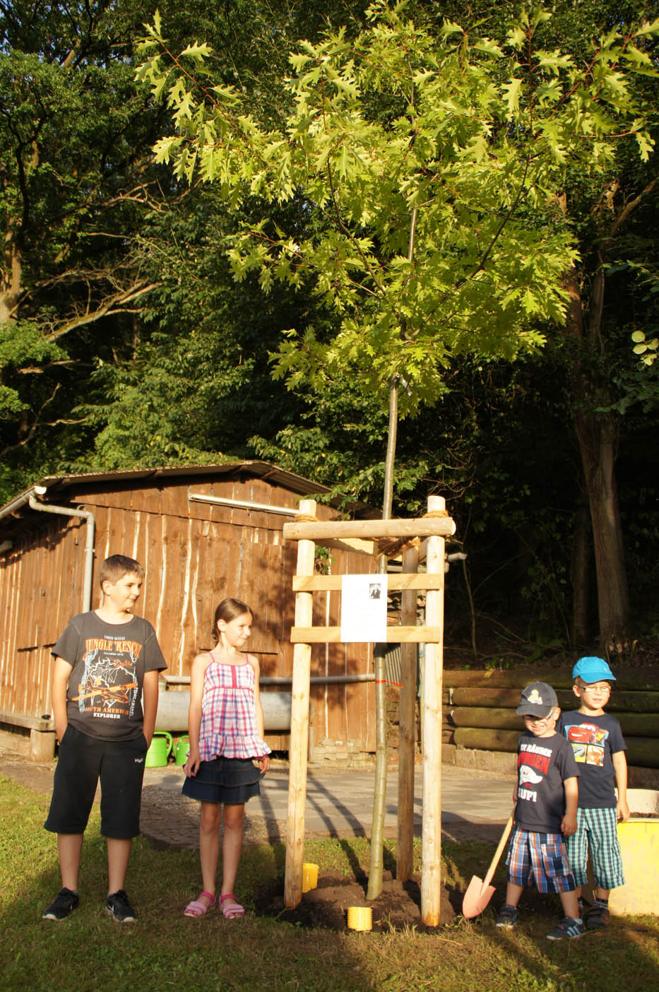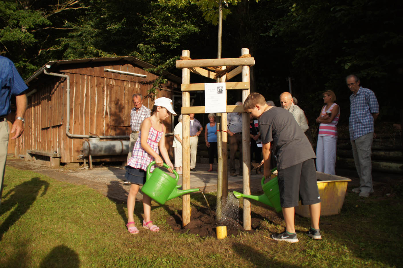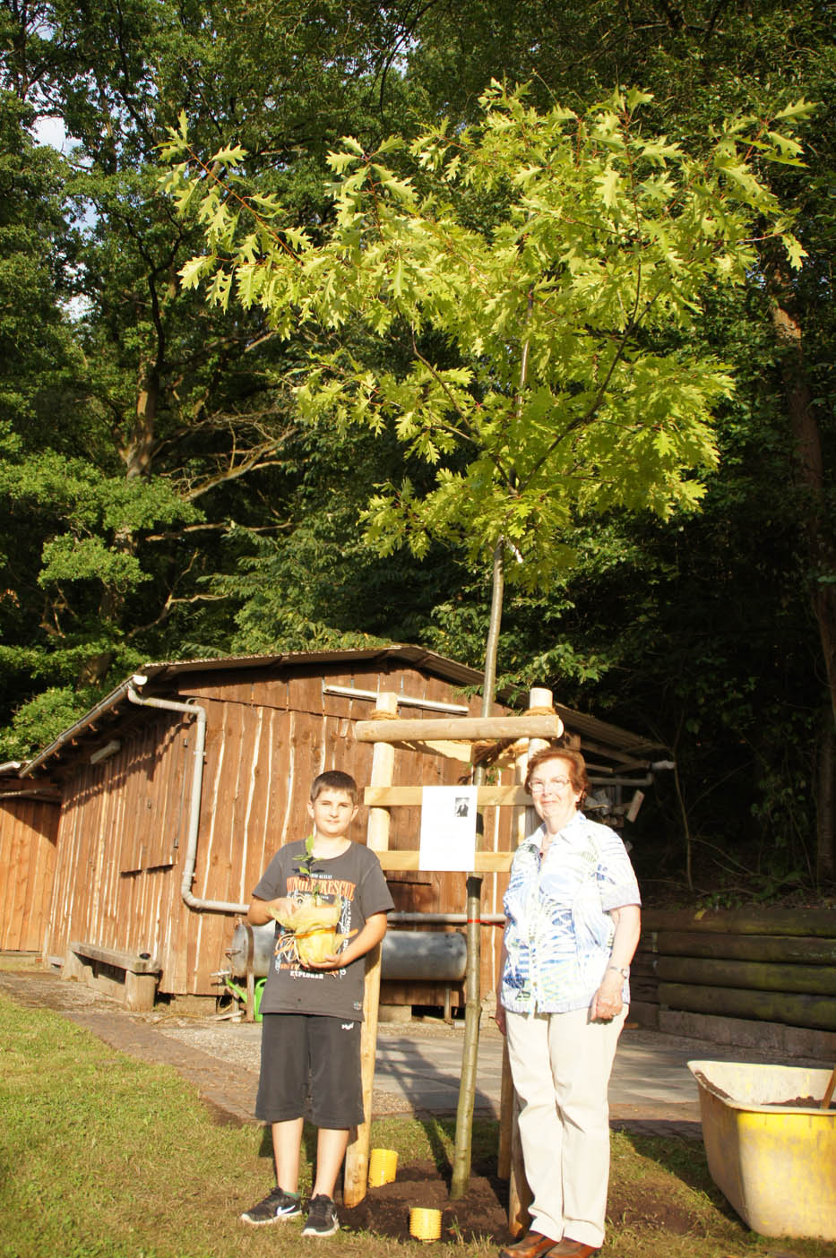 Anschließend ließen es sich die anwesenden Weggefährten von Karl nicht nehmen, einen Beitrag zum Setzen des Denkmals ihres Angehörigen oder Freundes Karl Junk zu leisten und versorgten die Eiche ebenfalls mit Erde oder Wasser, der eine oder andere auch mit einem Abschiedsgruß. Enkel Lukas Junk bekam einen kleinen Ableger der Karl-Junk-Eiche. Eine bewegende und feierliche Gedenkstunde.