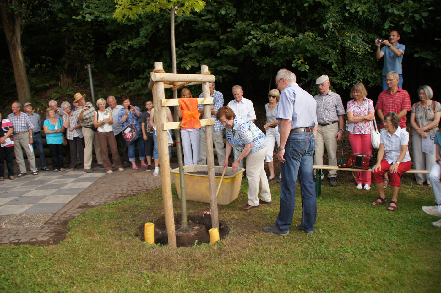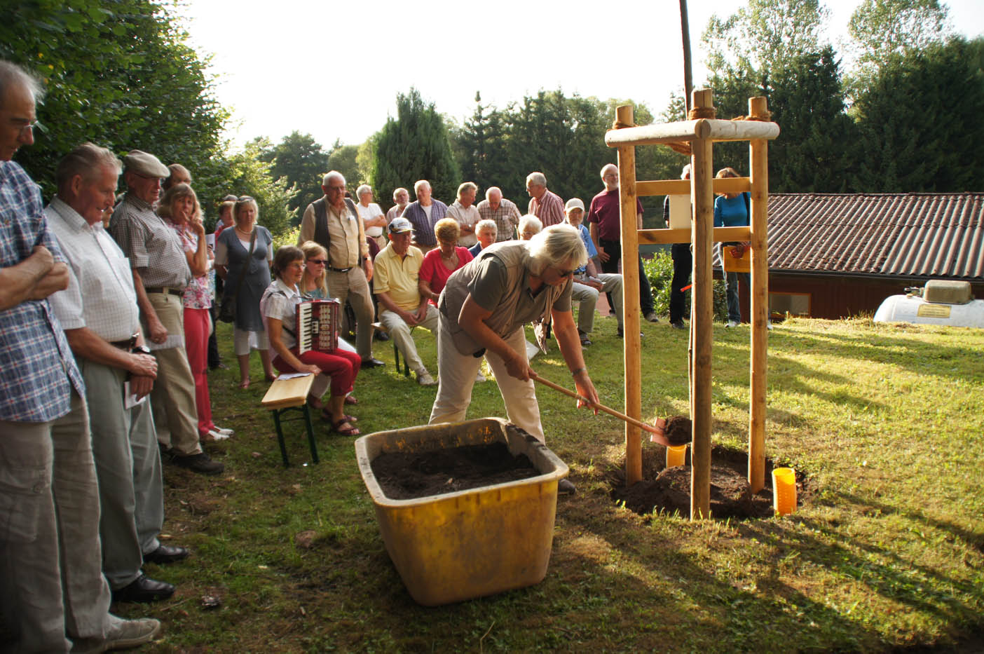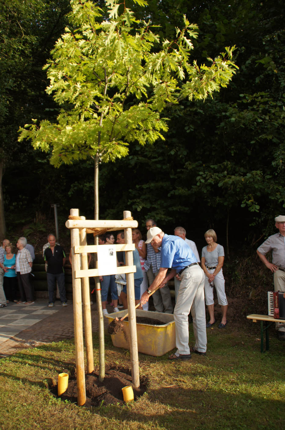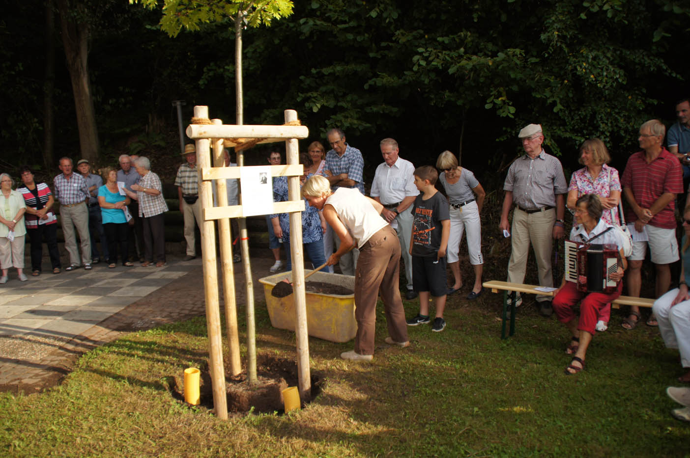 Lore Junk, Karls Witwe, war die Ehre vergönnt, der Karl-Junk-Eiche die erste Schippe Erde zum weiteren Gedeihen mitzugeben und damit die Pflanzung einzuleiten.