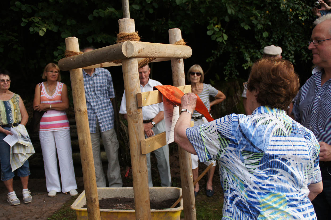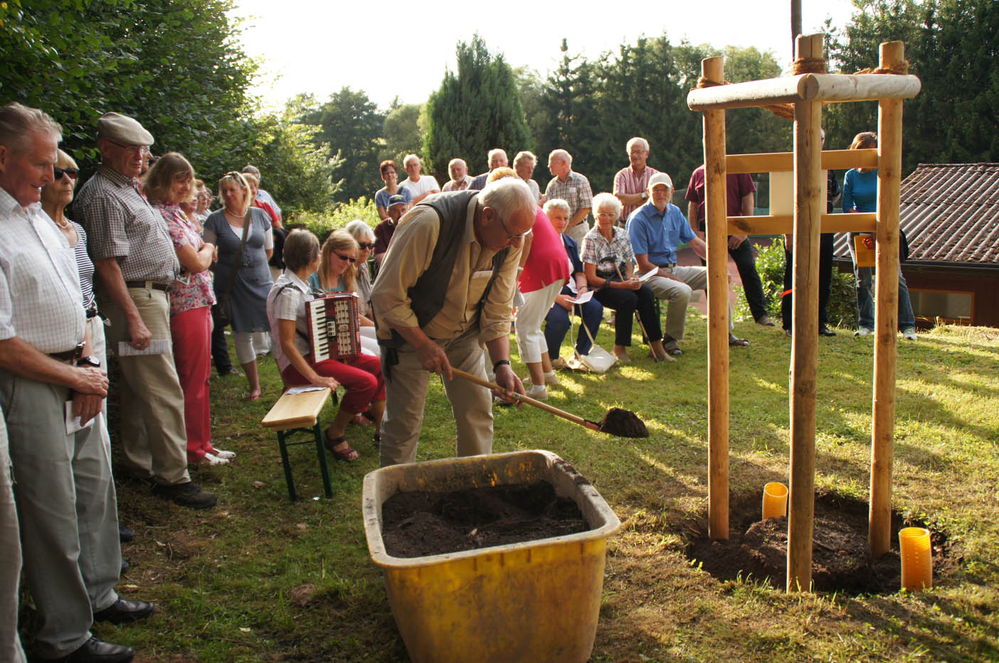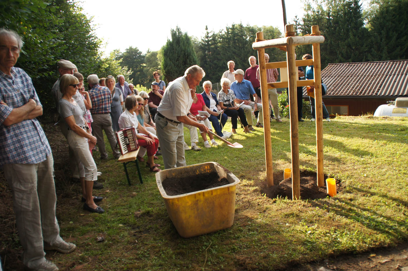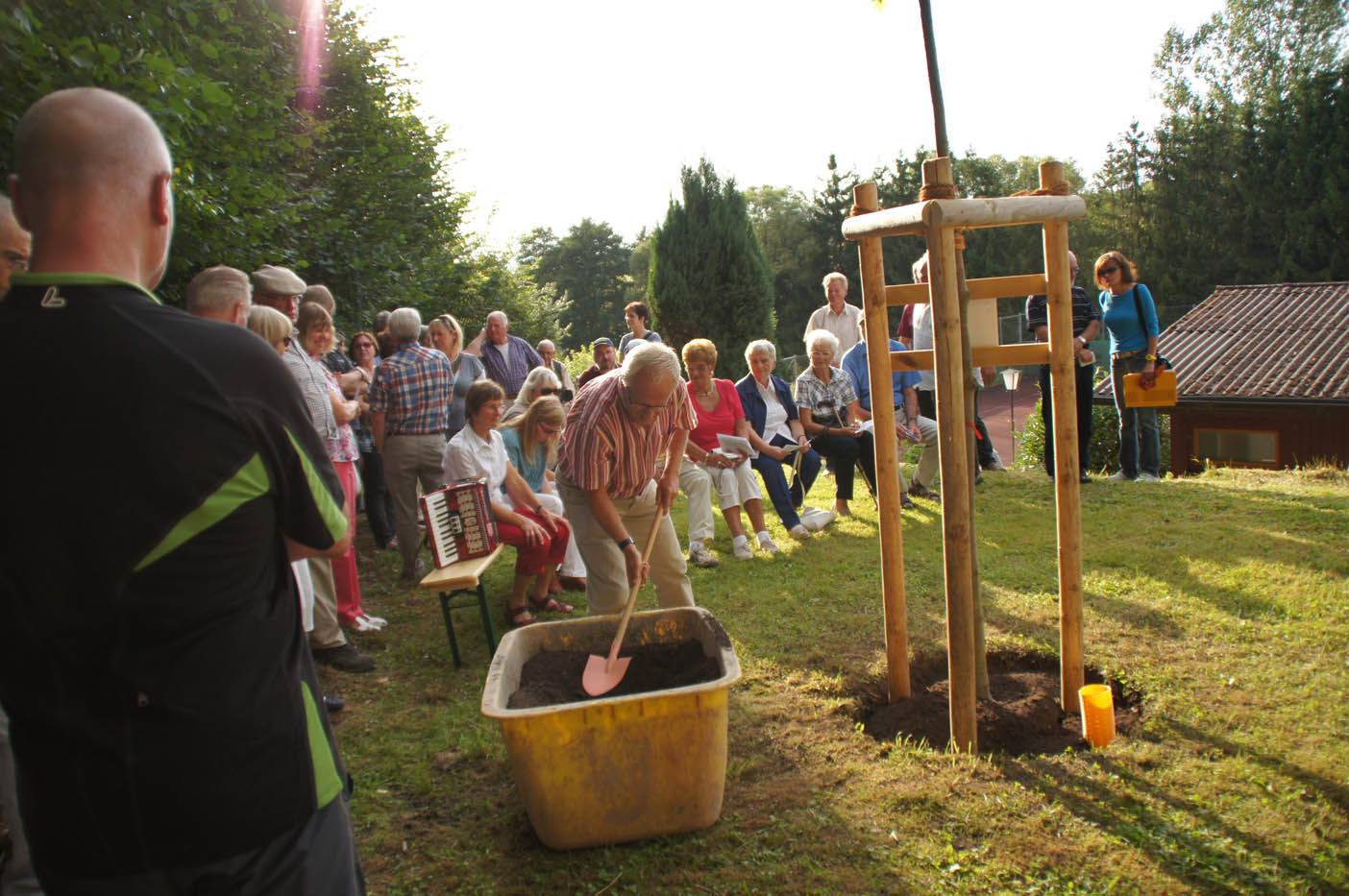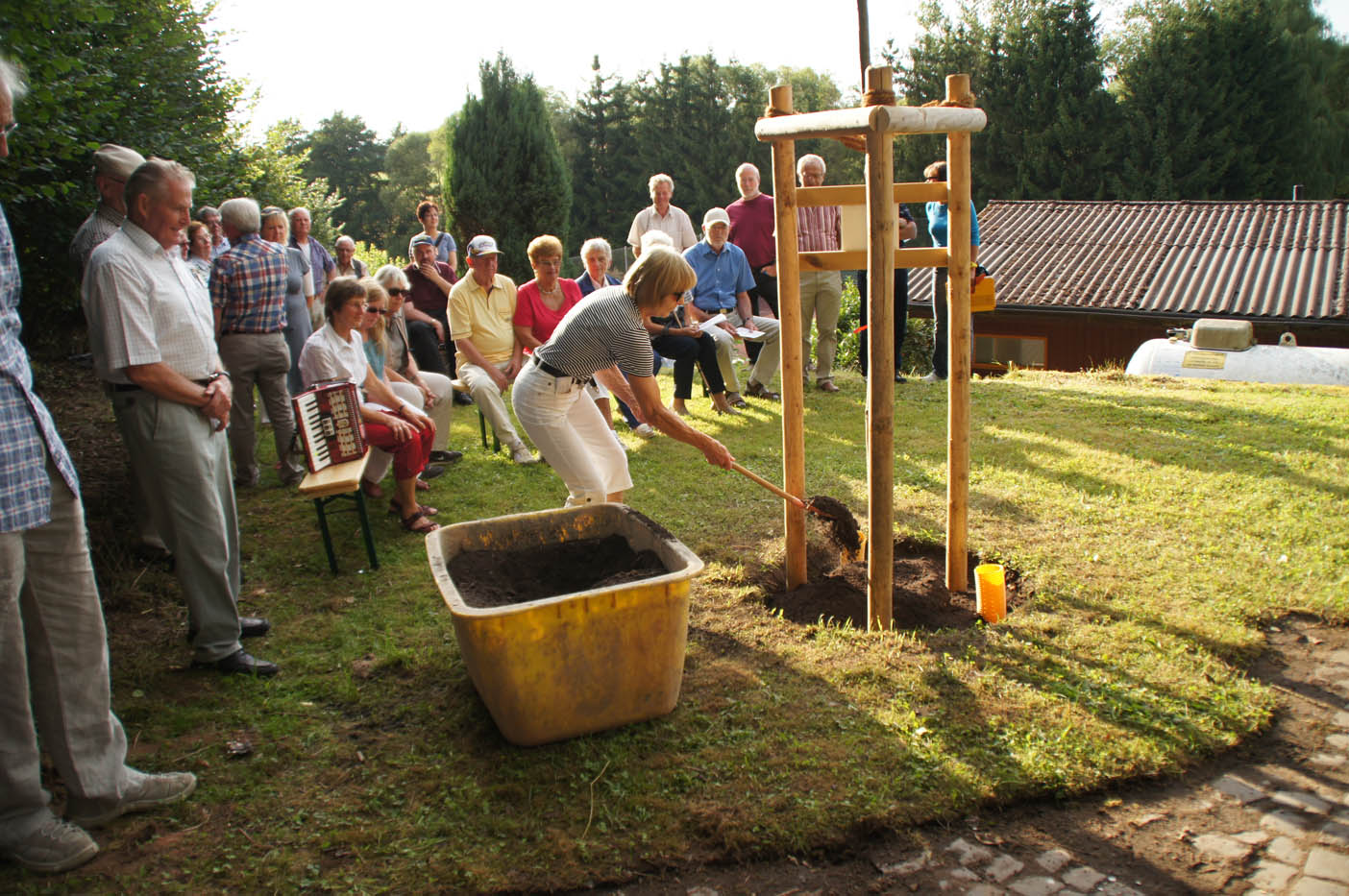 Lore Junk, Karls Witwe, war die Ehre vergönnt, der Karl-Junk-Eiche die erste Schippe Erde zum weiteren Gedeihen mitzugeben und damit die Pflanzung einzuleiten.