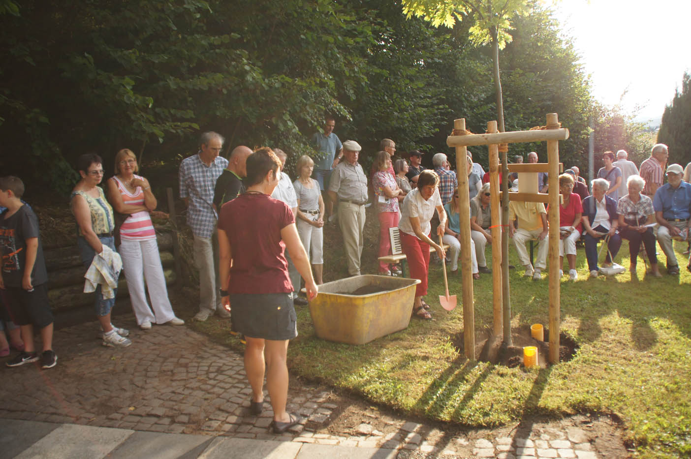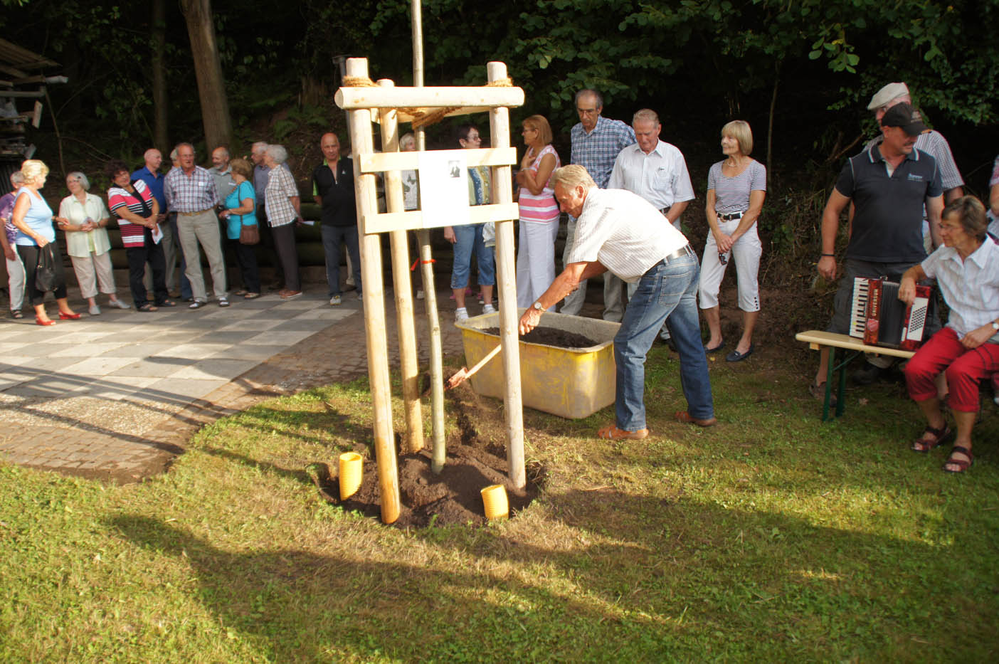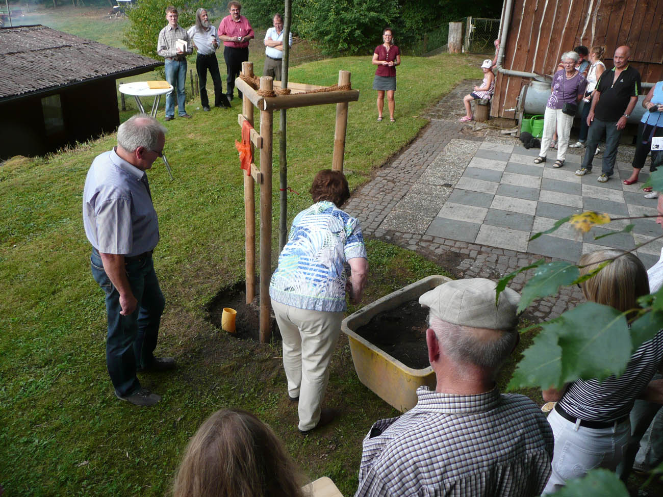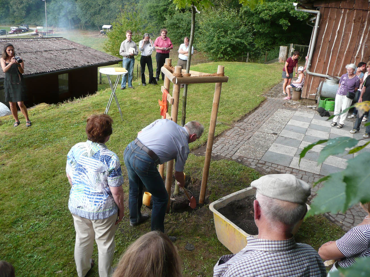 stießen mit einem besonderen Tröpfchen an und wünschten dem Baum einen guten Wuchs.