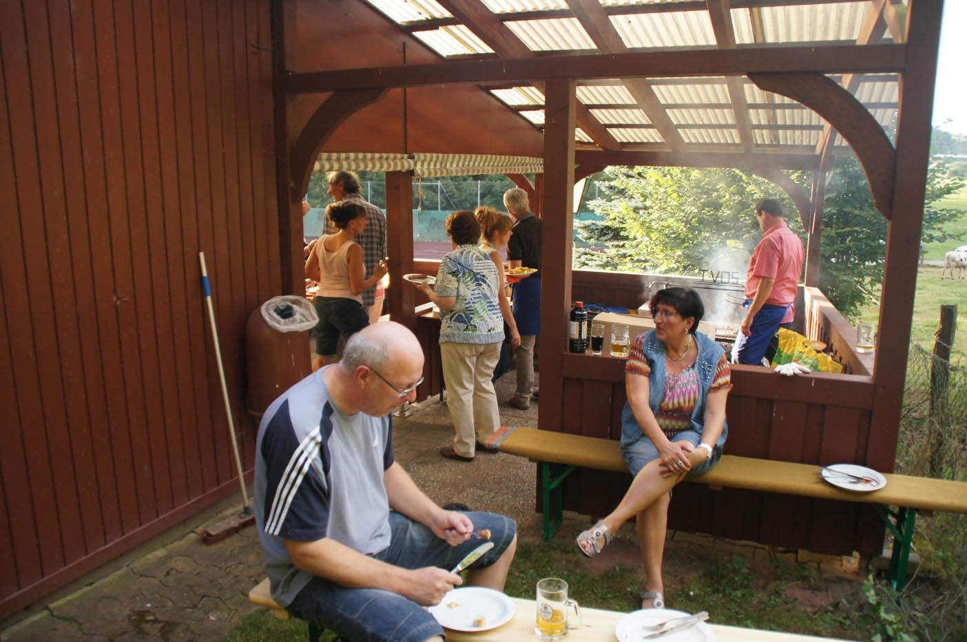 Zum Abschluss lud der Vorstand alle Beteiligten zum Grillen ein und zu einer Bildershow mit Musik über Karl im Vereinsheim, das als Kino umgebaut war.