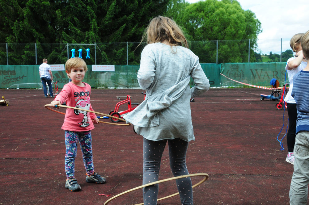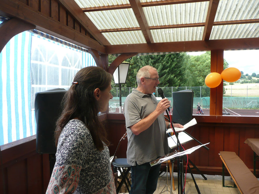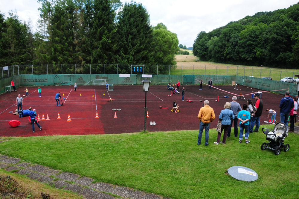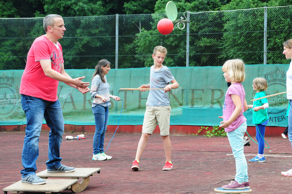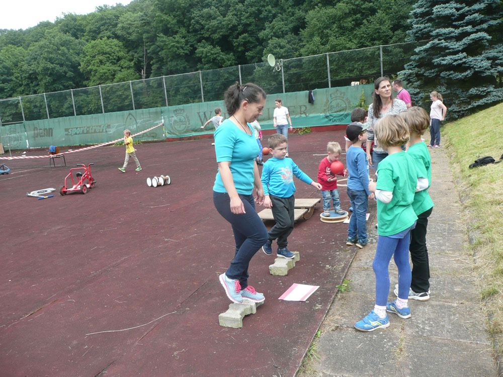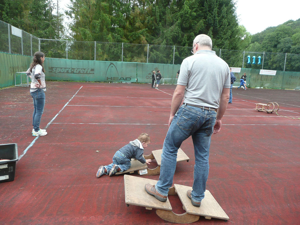 Beim anschließenden Wettbewerb „Klein gegen Groß“ von Andrea Müller ging es mit viel Engagement an 6 Sportstationen um Geschicklichkeit – und um einen Preis zur Belohnung für jeden Teilnehmer. Mit Livemusik der Nordic-Walker „Ackermann & Partner“ ließ sich bei Gegrilltem und Kaffee und Kuchen gemütlich dem bunten Treiben zuschauen.