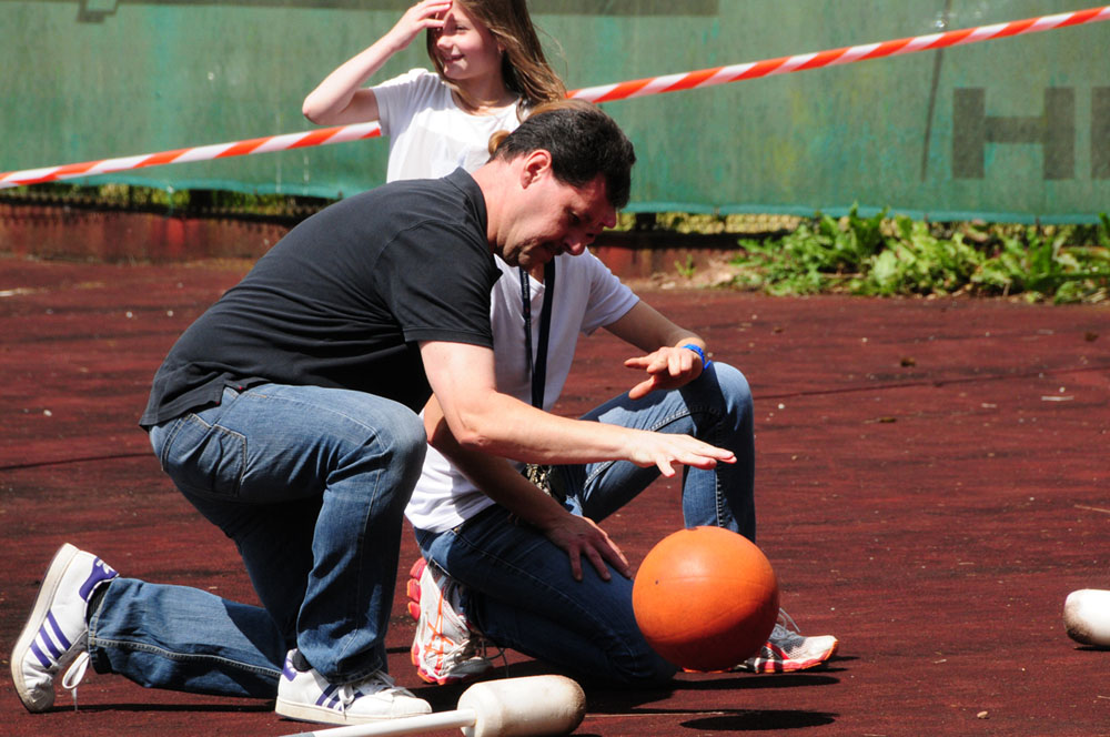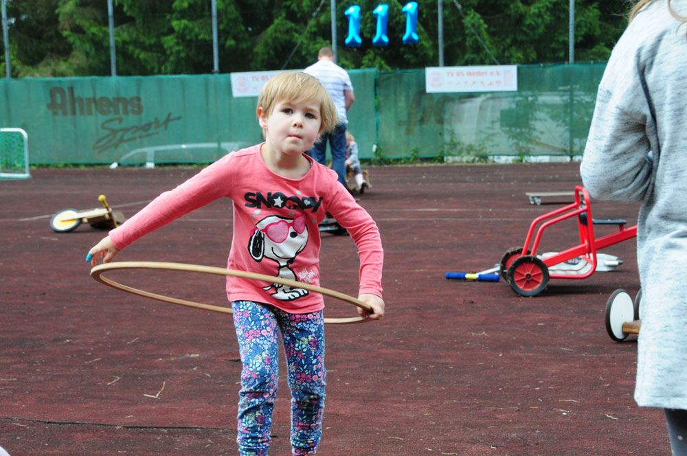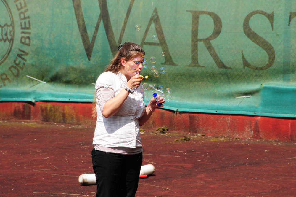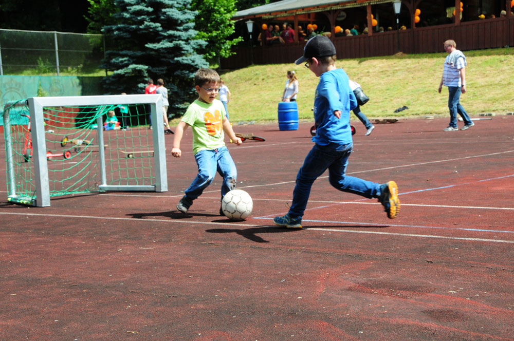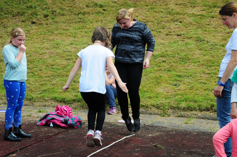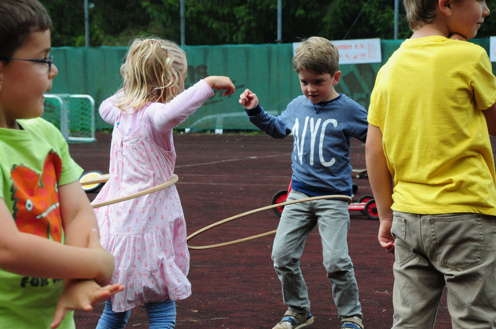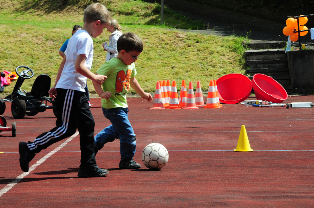 Beim anschließenden Wettbewerb „Klein gegen Groß“ von Andrea Müller ging es mit viel Engagement an 6 Sportstationen um Geschicklichkeit – und um einen Preis zur Belohnung für jeden Teilnehmer. Mit Livemusik der Nordic-Walker „Ackermann & Partner“ ließ sich bei Gegrilltem und Kaffee und Kuchen gemütlich dem bunten Treiben zuschauen.