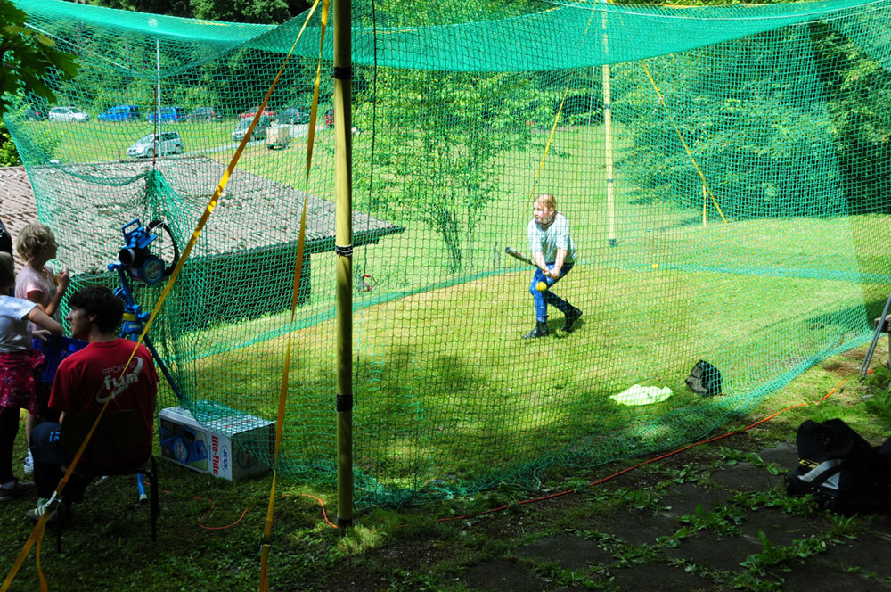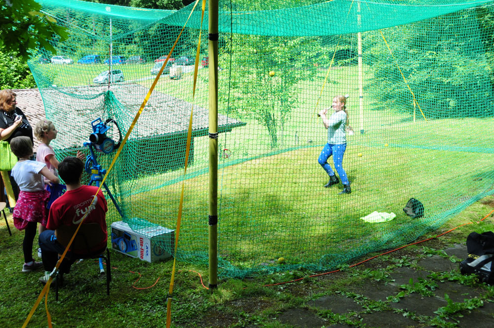 ... vom Kleinkind bis zum verdienten Ehrenmitglied hatten sich bei gutem Wetter am vergangenen Samstag eingefunden. Der Renner für die Kleinen waren die vielen verschiedenen Fahrzeuge, der Renner bei den Größeren war der Baseball-Käfig, in dem man die Bälle, die eine Ballmaschine abschießt, zurückschlagen muss (wenn man trifft).