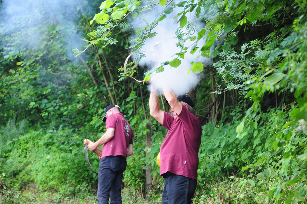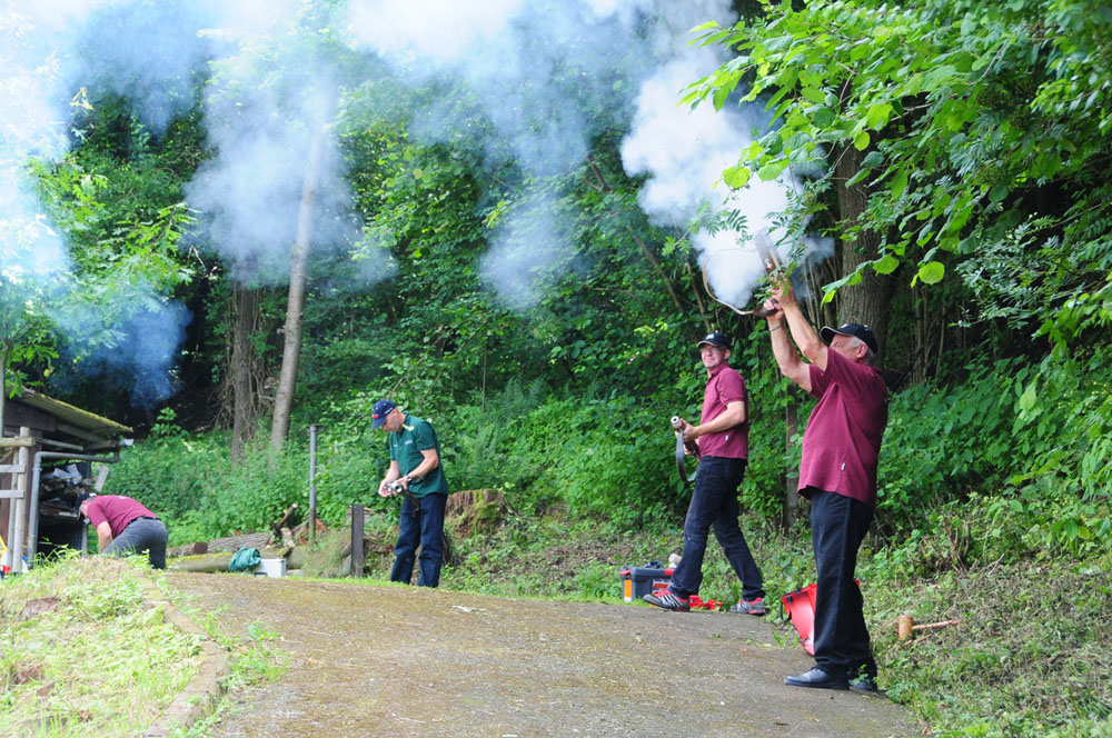 Nach vier Salven Böllerschüssen des Schützenvereins resümierte der Vorsitzende Karl-Heinz Kajewski die bewegte Vereinsgeschichte und bedankte sich bei allen Helfern und Mitgliedern aller 30 Übungsgruppen.