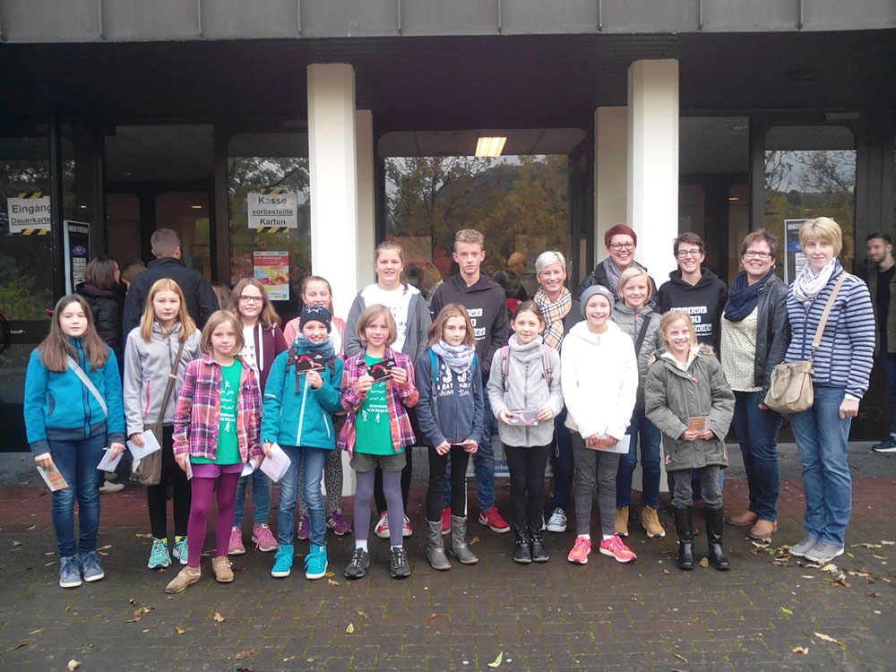 Unter den 1500 Fans in der ausverkauften Ausweich-Heimwettkampfstätte, der Georg-Gassmann-Halle in Marburg, waren auch 20 Turnkinder des TV 05 Wetter (teilweise mit Eltern) mit Trainerin Andrea Müller.