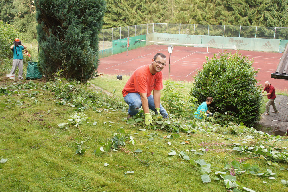 ... geschnitten, gemäht, gehackt, aufgeräumt, ein Schachbrett ausgegraben, das Loch für die Karl-Junk-Eiche gebuddelt, der Jahneichen-Gedenkstein geschrubbt und gut gegessen.
