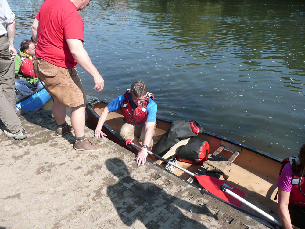 Aufgeteilt war die Gruppe auf vier Boote. Die Besatzung eines Bootes musste leider wegen Fehlern des Steuermannes (frau) das Boot während der Fahrt auf der Lahn verlassen. Während die anderen drei Boote schon am Rastplatz angelangt waren, beschäftigte sich die Besatzung des gekenterten Bootes mit dem Auffischen der verloren gegangenen Utensilien.