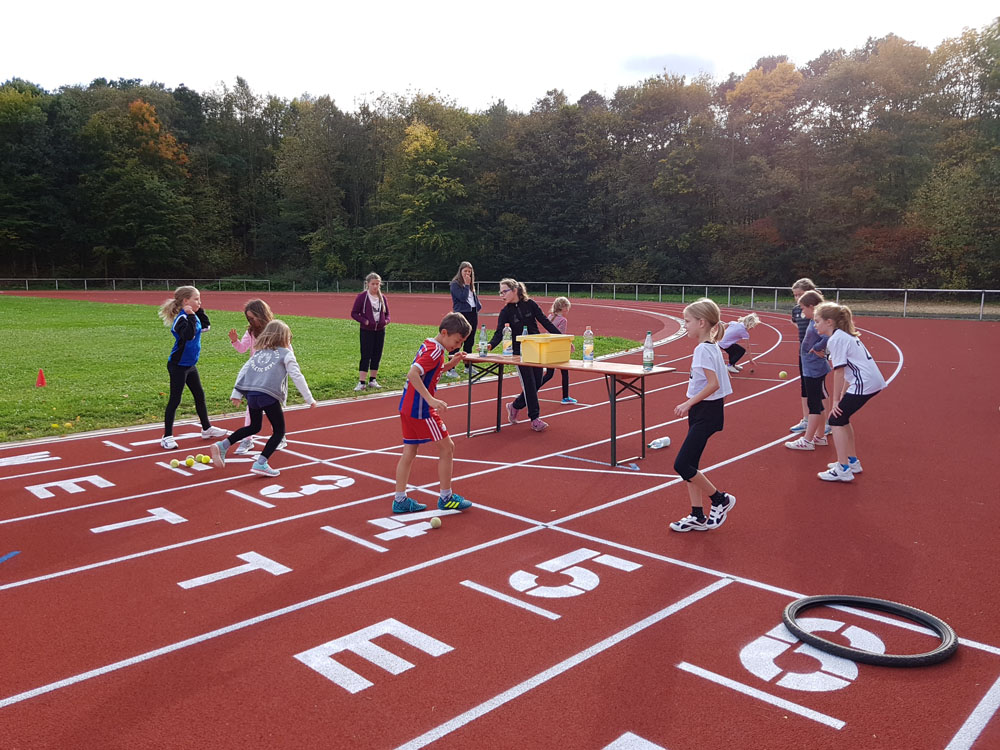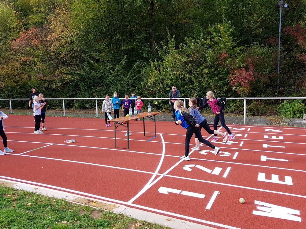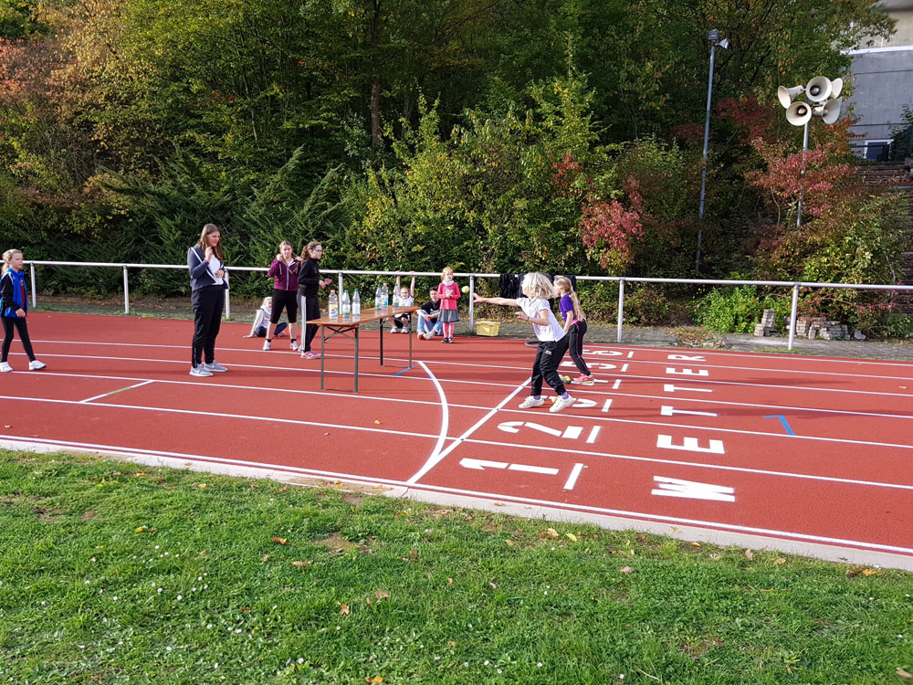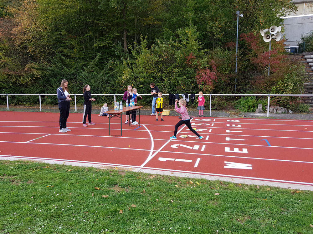 Mit 20 Jugendlichen aus der Jugendturn-Gruppe von Andrea Müller und aus der Jugend-Leichtathletik-Gruppe von Anna-Lena Wellner startete das vereinsinterne Lauffest mit einer Biathlon-Staffel. Hier mussten 4er-Teams eine Laufstrecke absolvieren und am Ende Flaschen von einem Tisch werfen. Für jede Flasche, die stehenblieb, musste man eine kleine Strafrunde laufen.