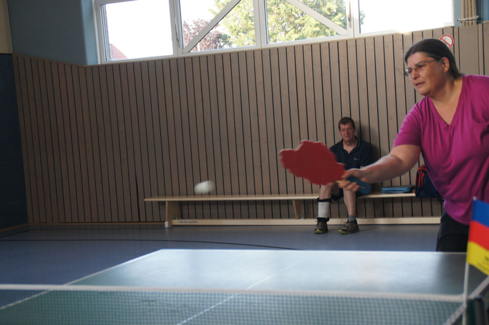 Witzig die Kommentare der Spieler bei diesem spaßigen Turnier: Beim Kantenabpraller wurde nicht "Kante" gerufen, sondern "Grenztreffer!" und "Mit dem Goßfeldener Schläger hätte ich keine Chance gehabt!" oder "Welche Grenze hab ich jetzt eigentlich?"