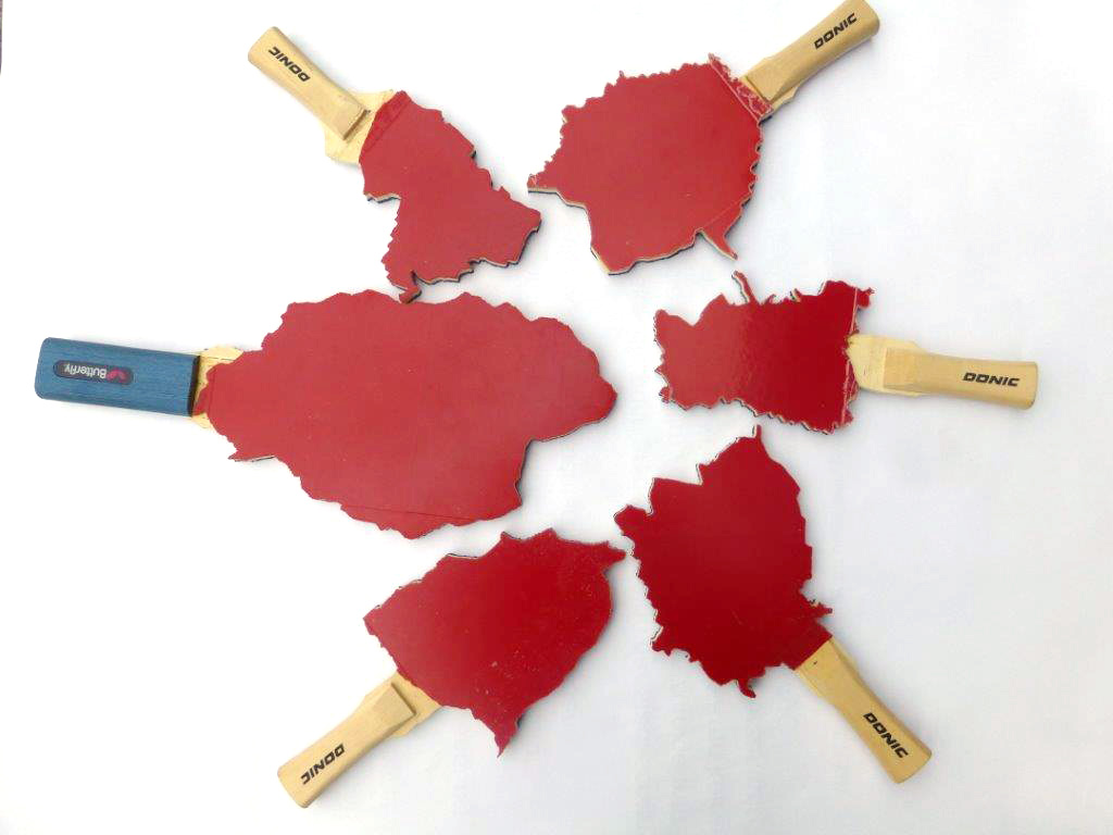 Zur Einstimmung auf den Grenzegang 2015 veranstaltete Gerhard Zissel ein kurioses Tischtennisturnier, denn gespielt wurde mit Schlägern, die die Form der Grenzen der Grenzegangsgemeinden hatten! |