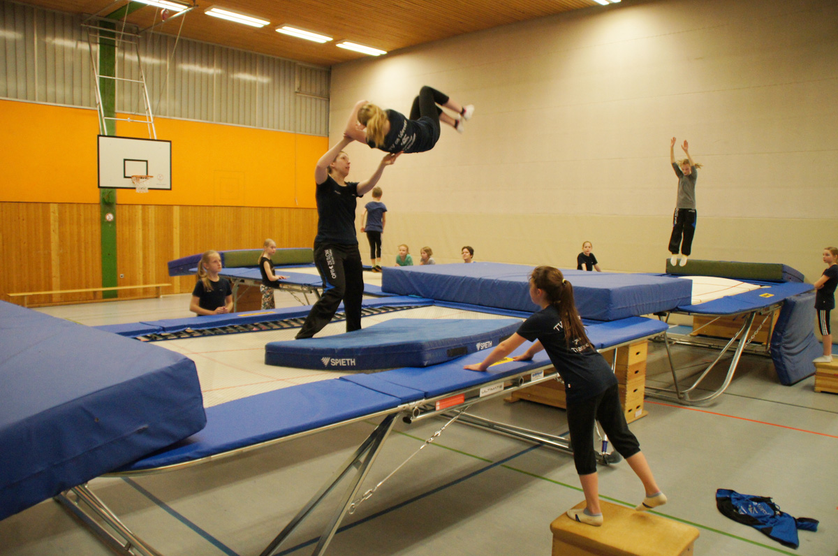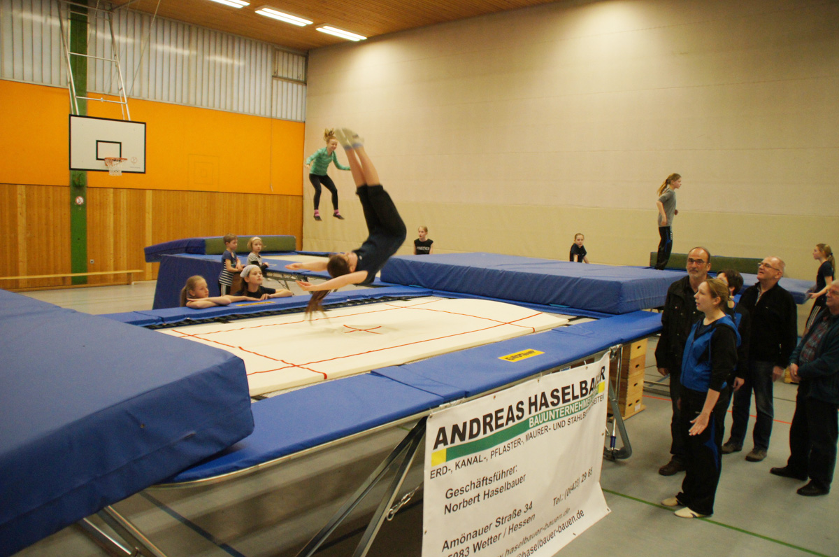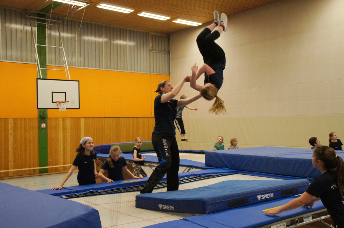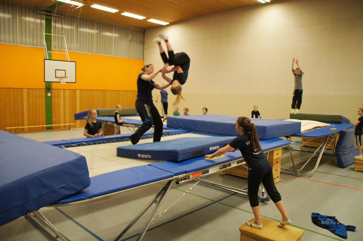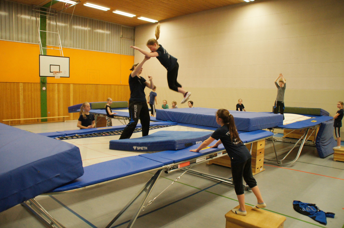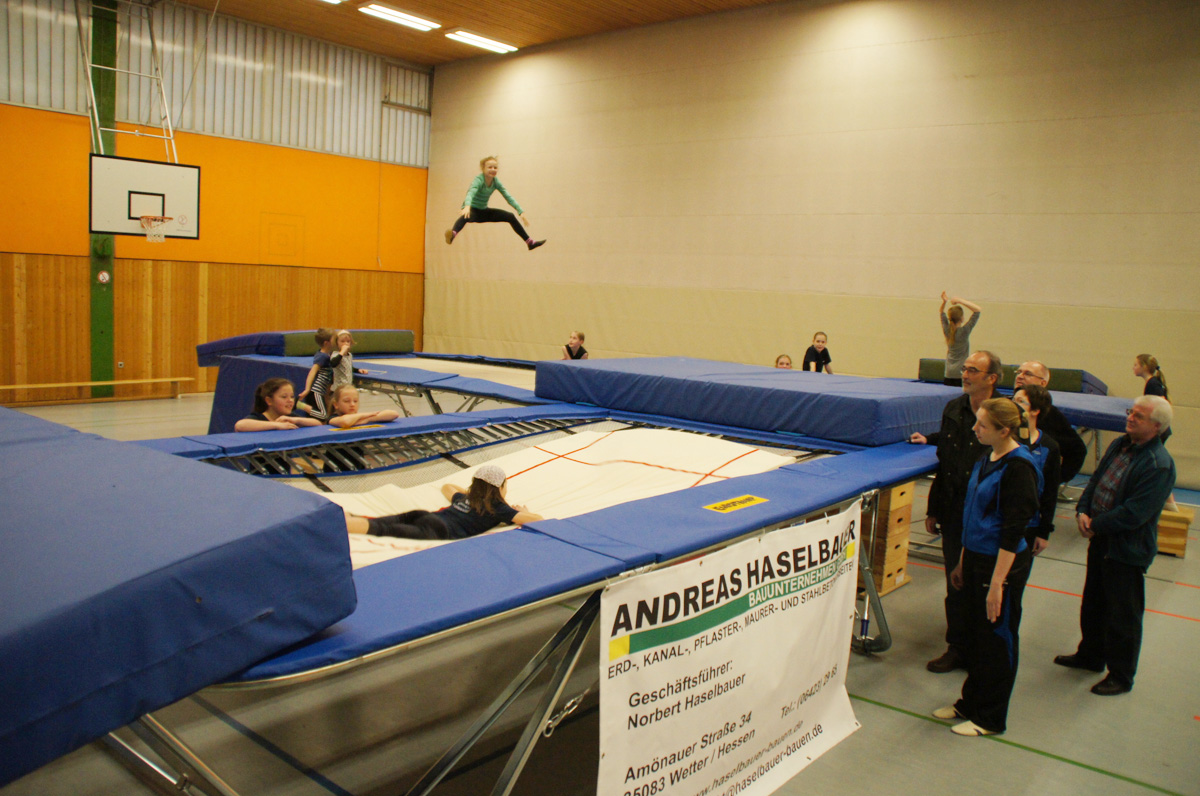 Mit der Spende der Firma Andreas Haselbauer in Höhe von 2.000 € konnte der Turnverein für die Trampoliner einen Schraubensalto-Gürtel sowie eine Icepad-Spezialmatte anschaffen. Mit diesen Hilfsmitteln wird das Einüben von neuen, schwierigen Sprüngen erleichtert. Die Kinder hatten sichtlich ihren Spaß damit!