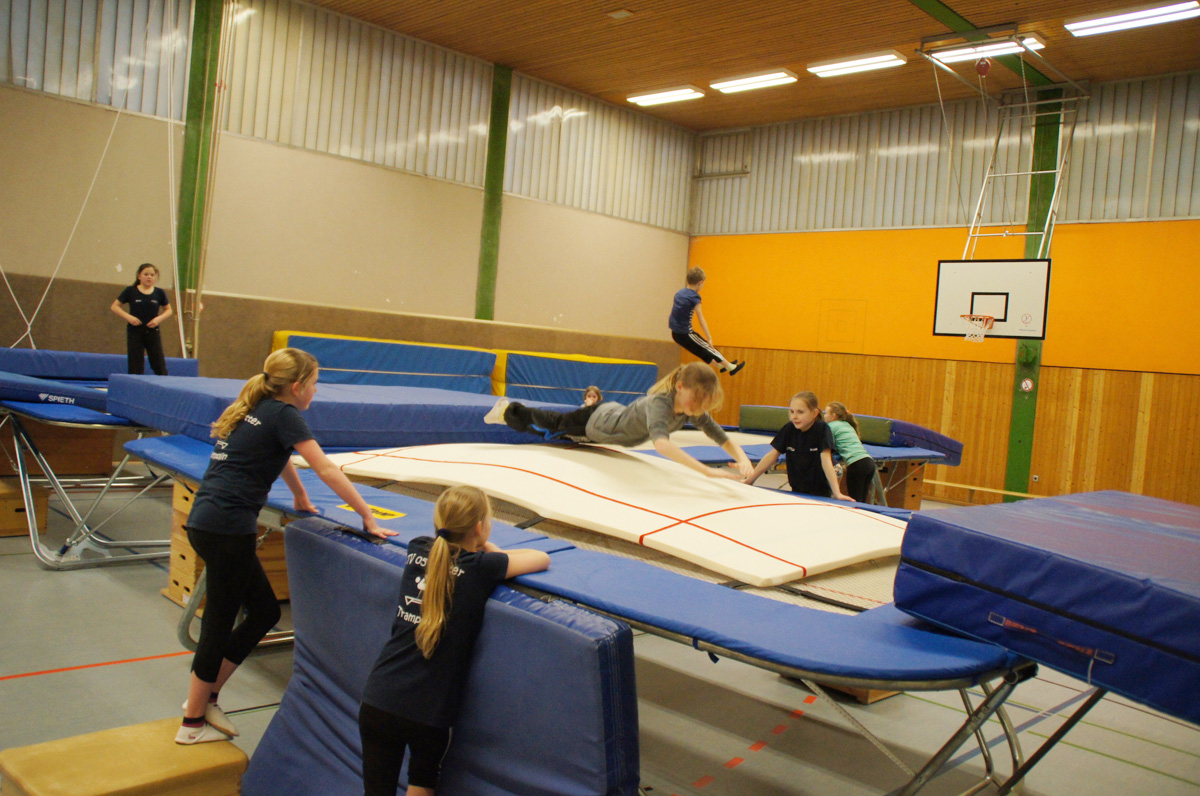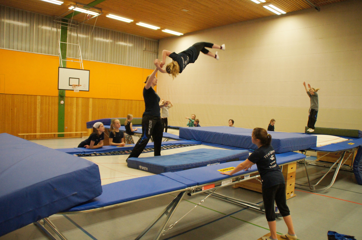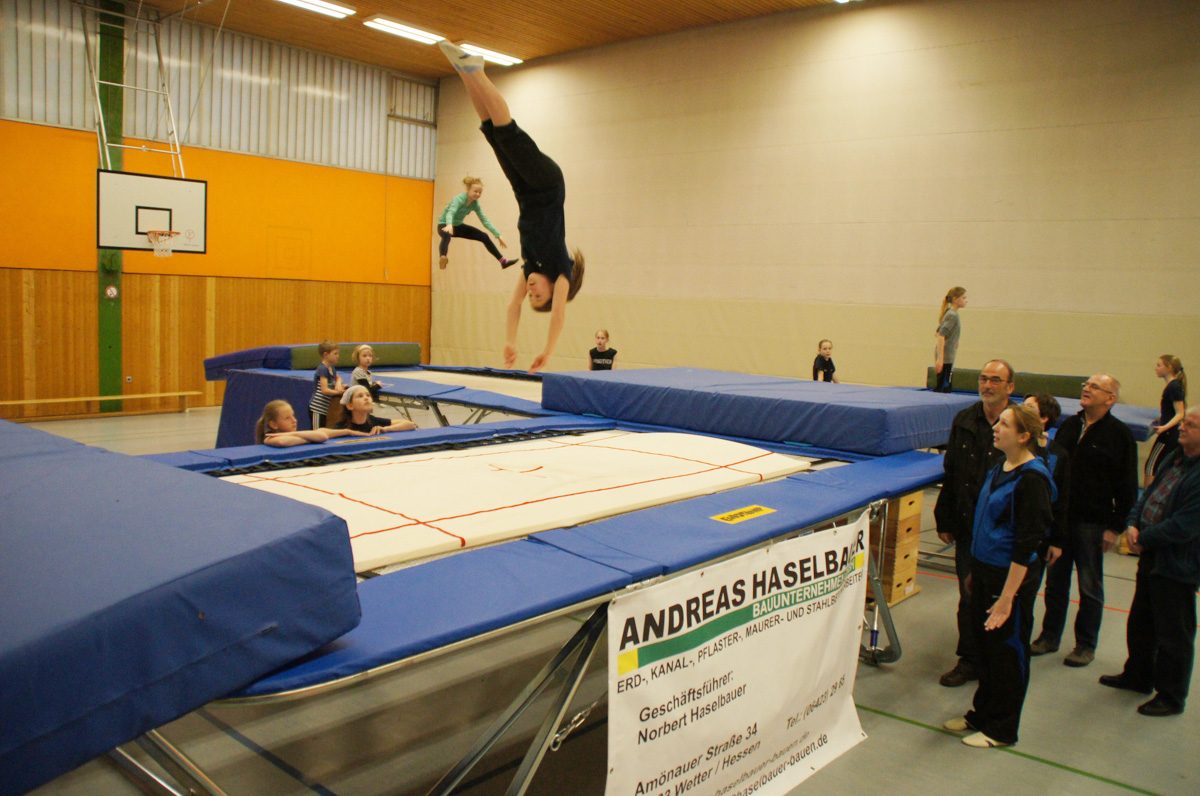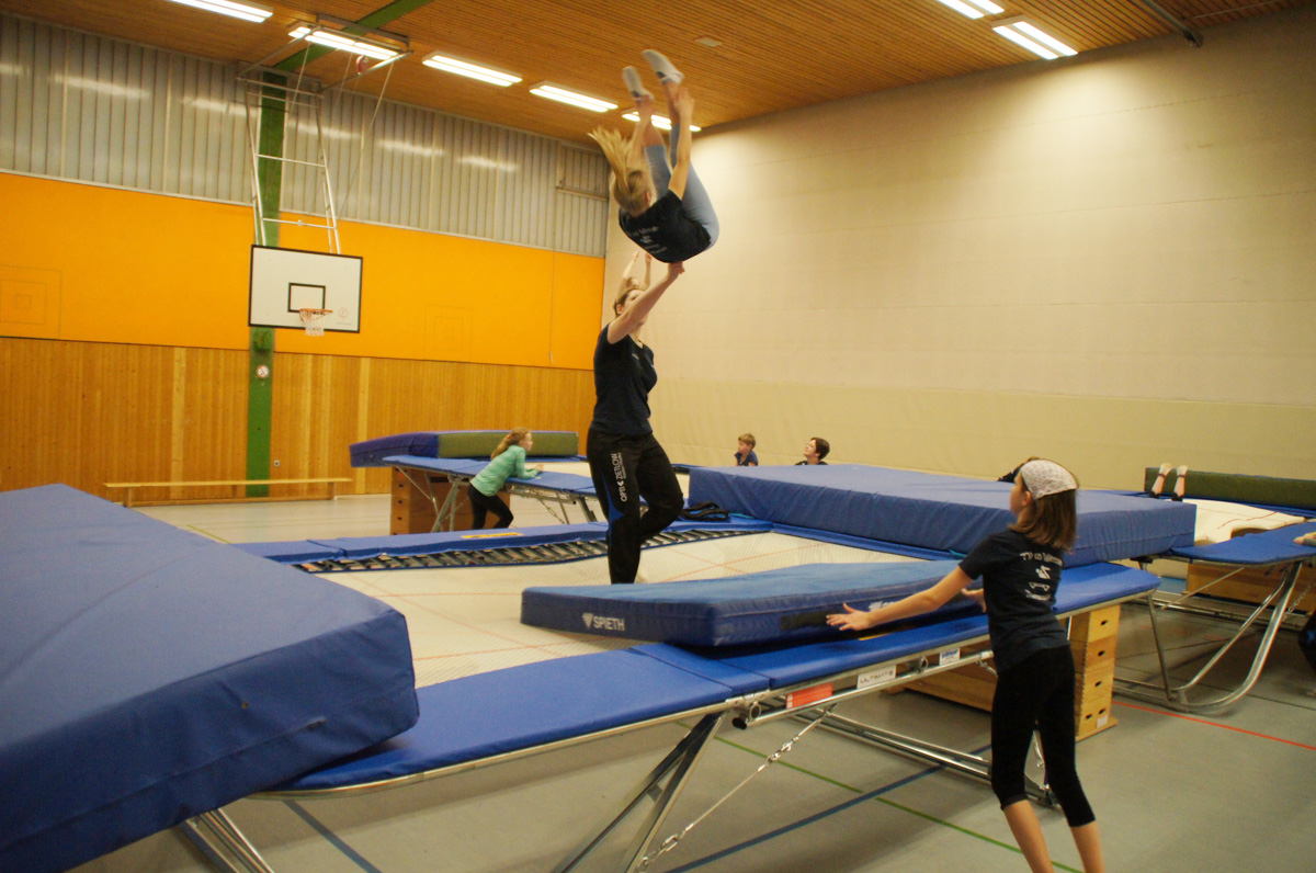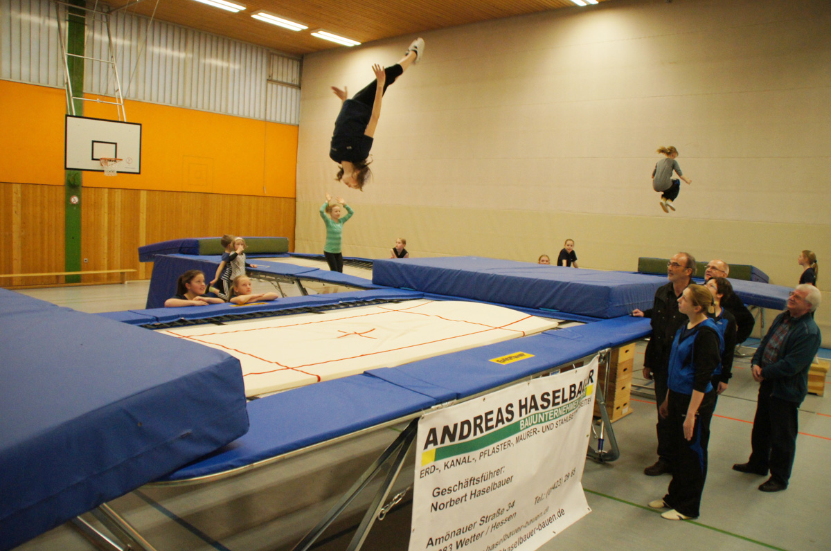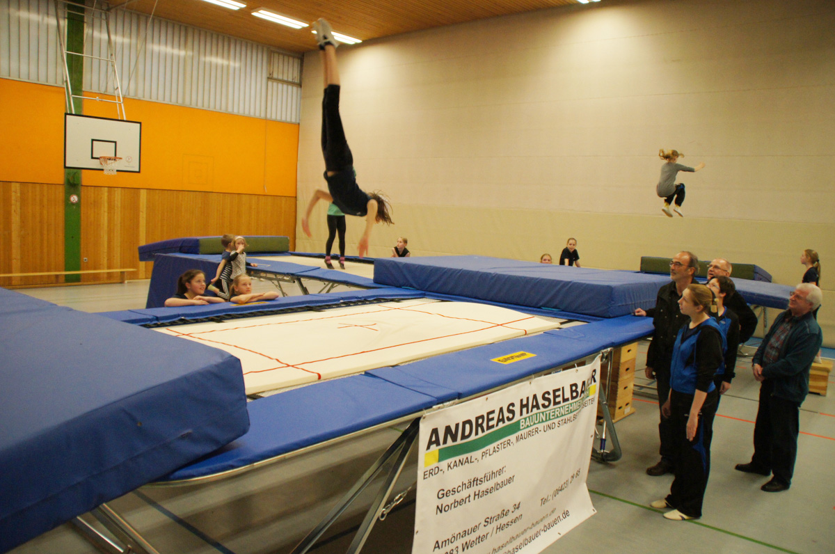 Mit der Spende der Firma Andreas Haselbauer in Höhe von 2.000 € konnte der Turnverein für die Trampoliner einen Schraubensalto-Gürtel sowie eine Icepad-Spezialmatte anschaffen. Mit diesen Hilfsmitteln wird das Einüben von neuen, schwierigen Sprüngen erleichtert. Die Kinder hatten sichtlich ihren Spaß damit!