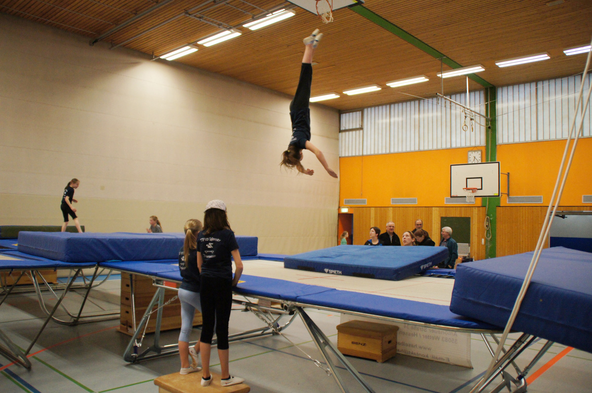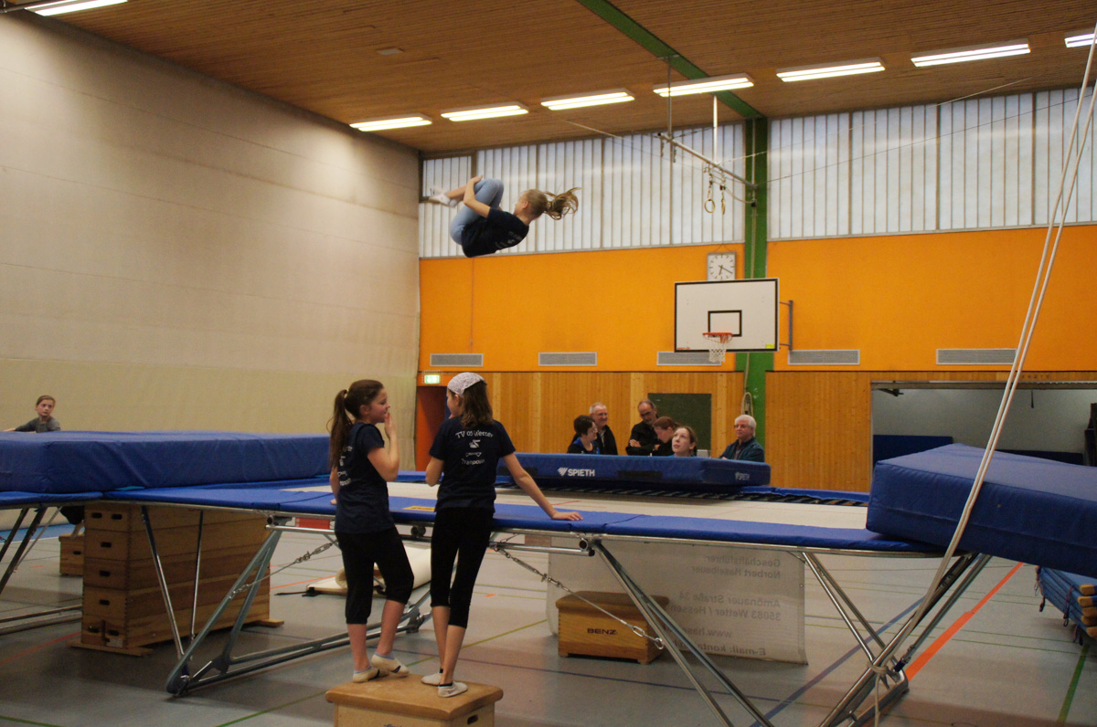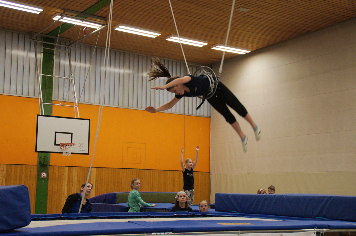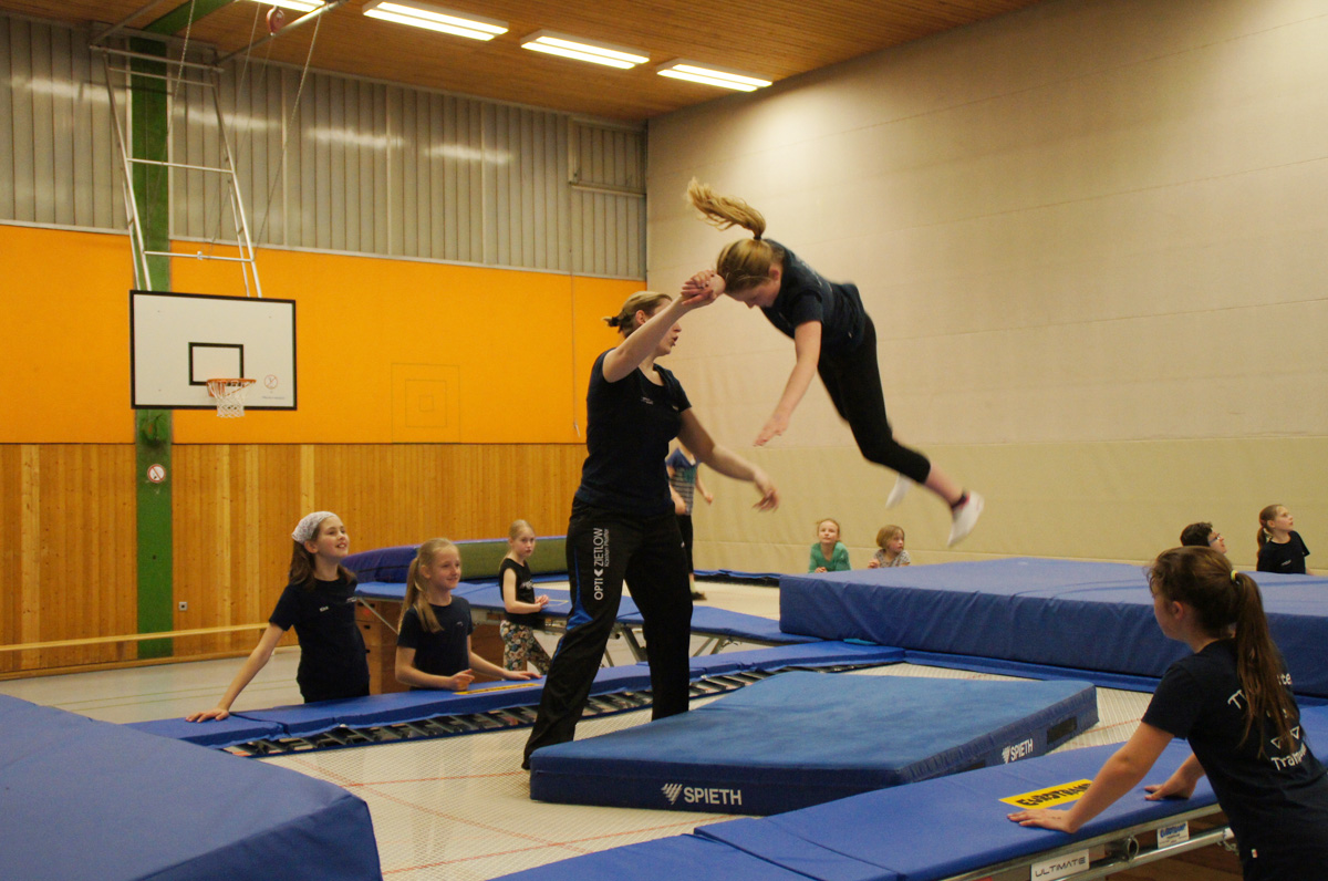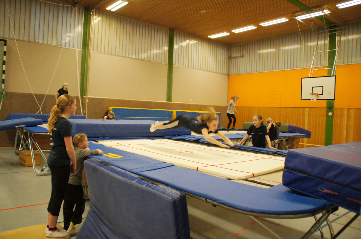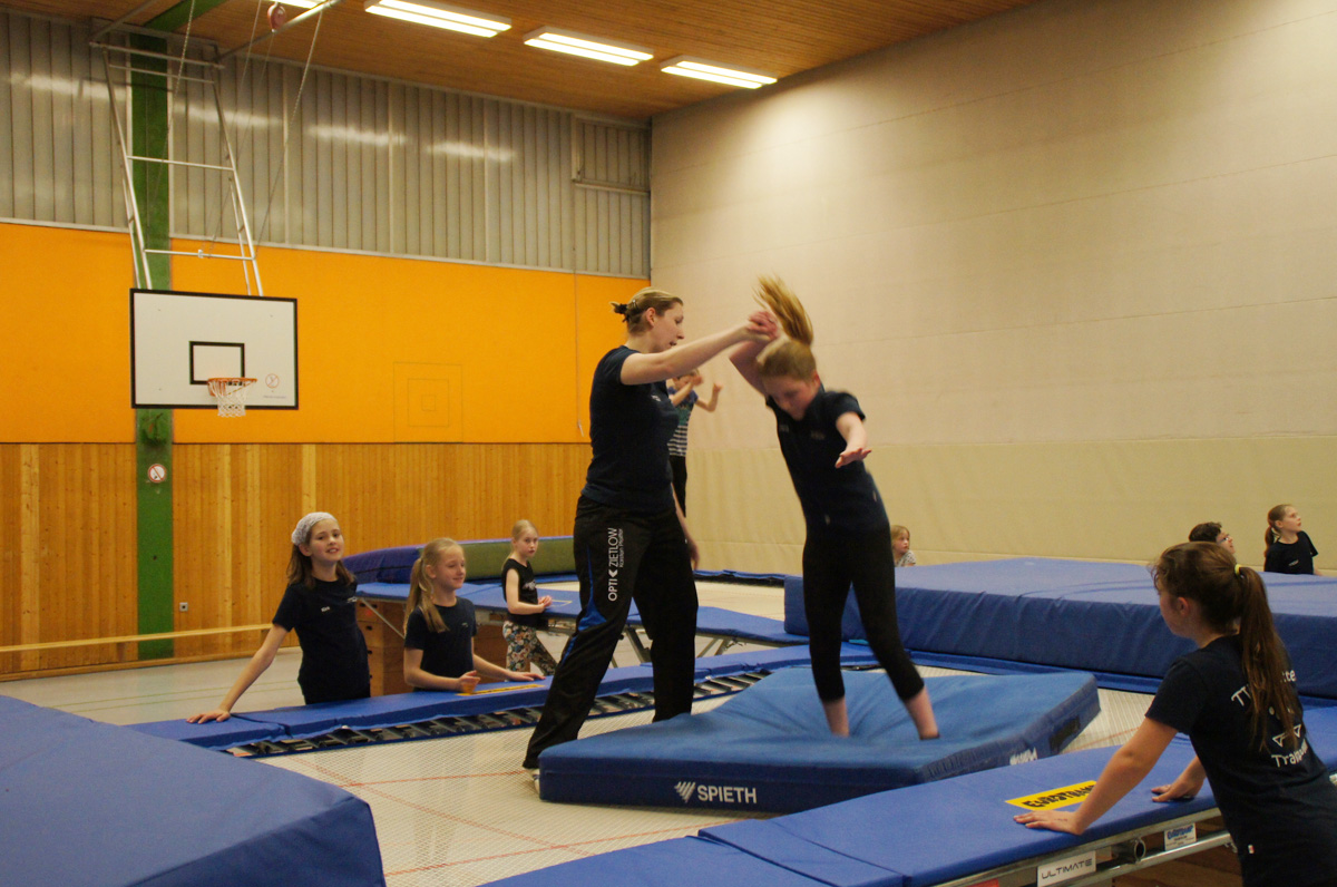 Mit der Spende der Firma Andreas Haselbauer in Höhe von 2.000 € konnte der Turnverein für die Trampoliner einen Schraubensalto-Gürtel sowie eine Icepad-Spezialmatte anschaffen. Mit diesen Hilfsmitteln wird das Einüben von neuen, schwierigen Sprüngen erleichtert. Die Kinder hatten sichtlich ihren Spaß damit!