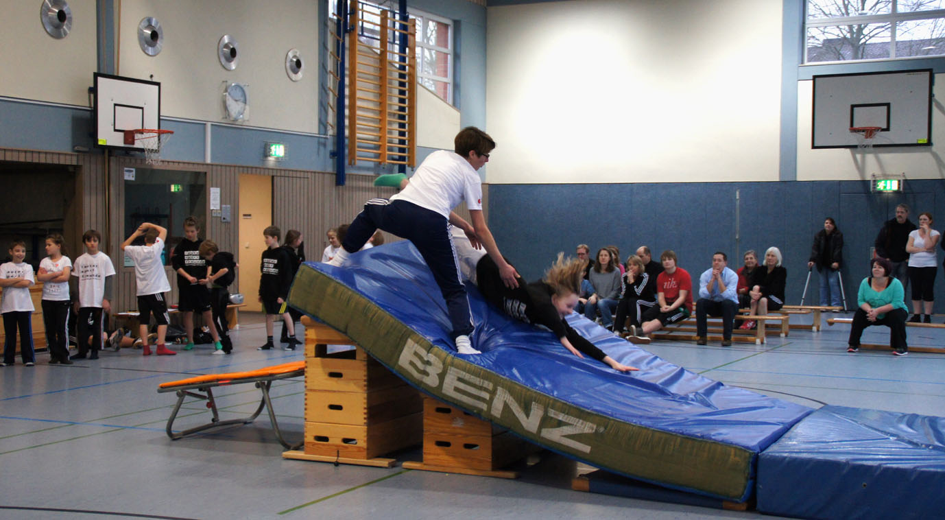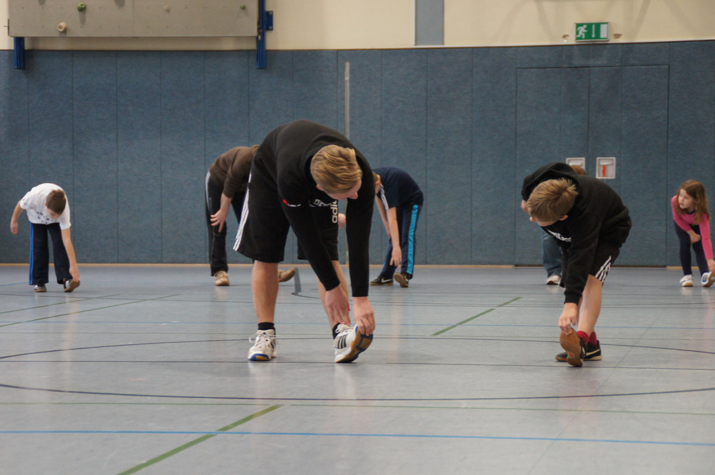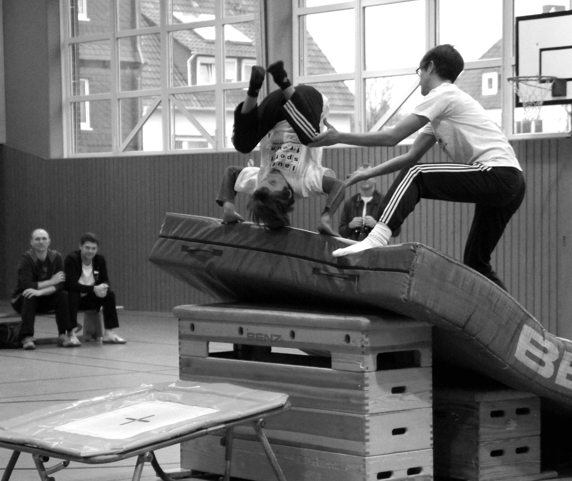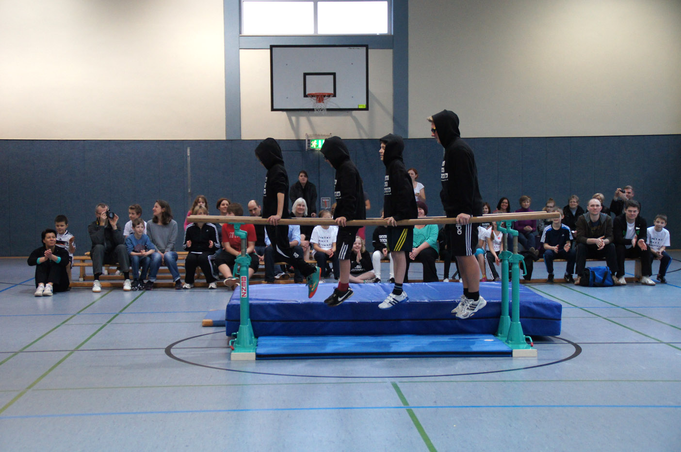 Nach einem kurzen Kennlernspiel und einem Aufwärmtraining nach 'Footballer' Art durften sich die Gäste kurz ausruhen, um den Darbietungen am Minitrampolin und Barren zuzusehen, bevor sie dann im Gefängnisausbruch gegen die 'Elite' antreten mussten. Dabei muss den Gästen sogar der Gewinn (wenn auch im Hundertstelbereich) zugesprochen werden.