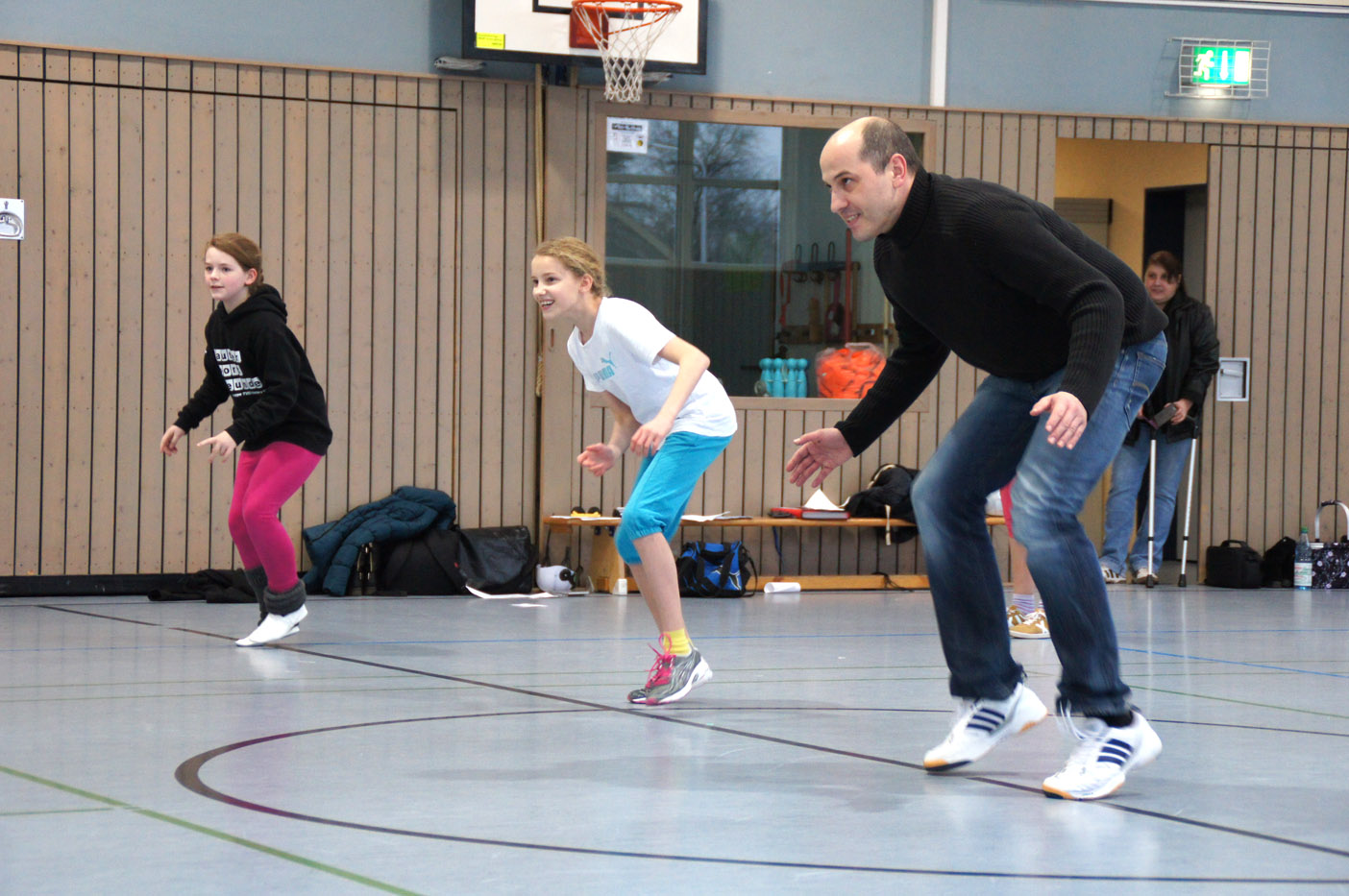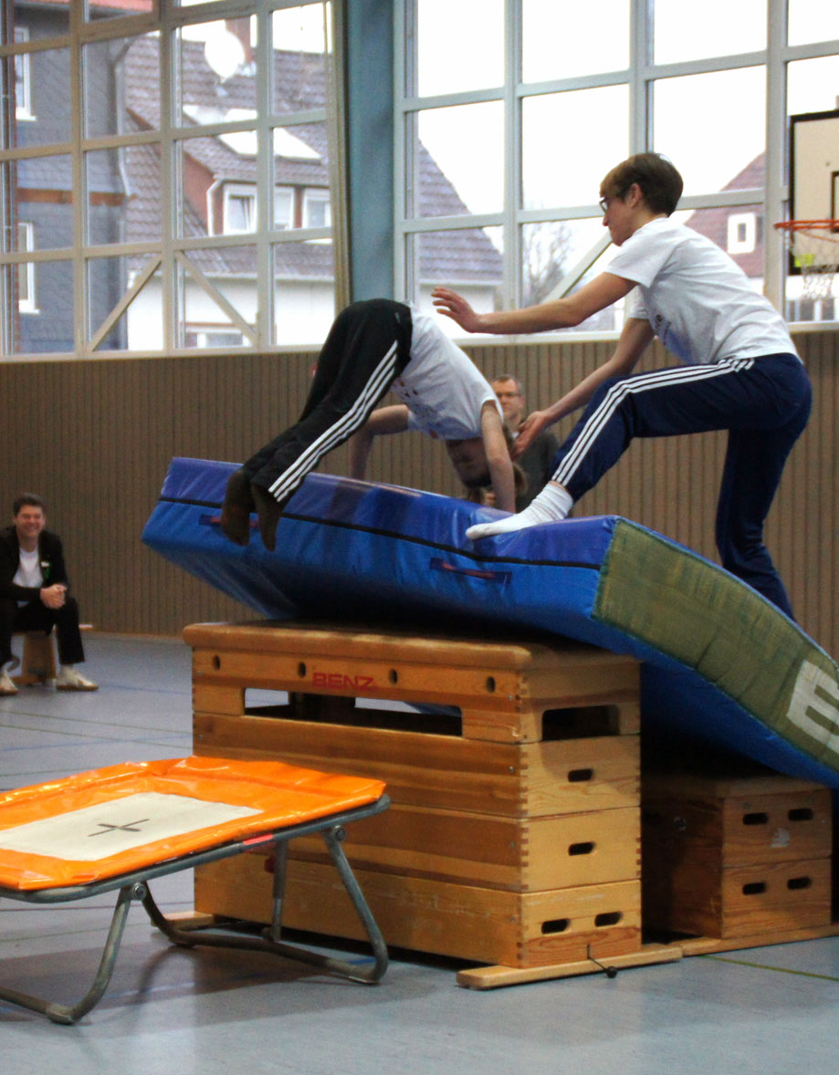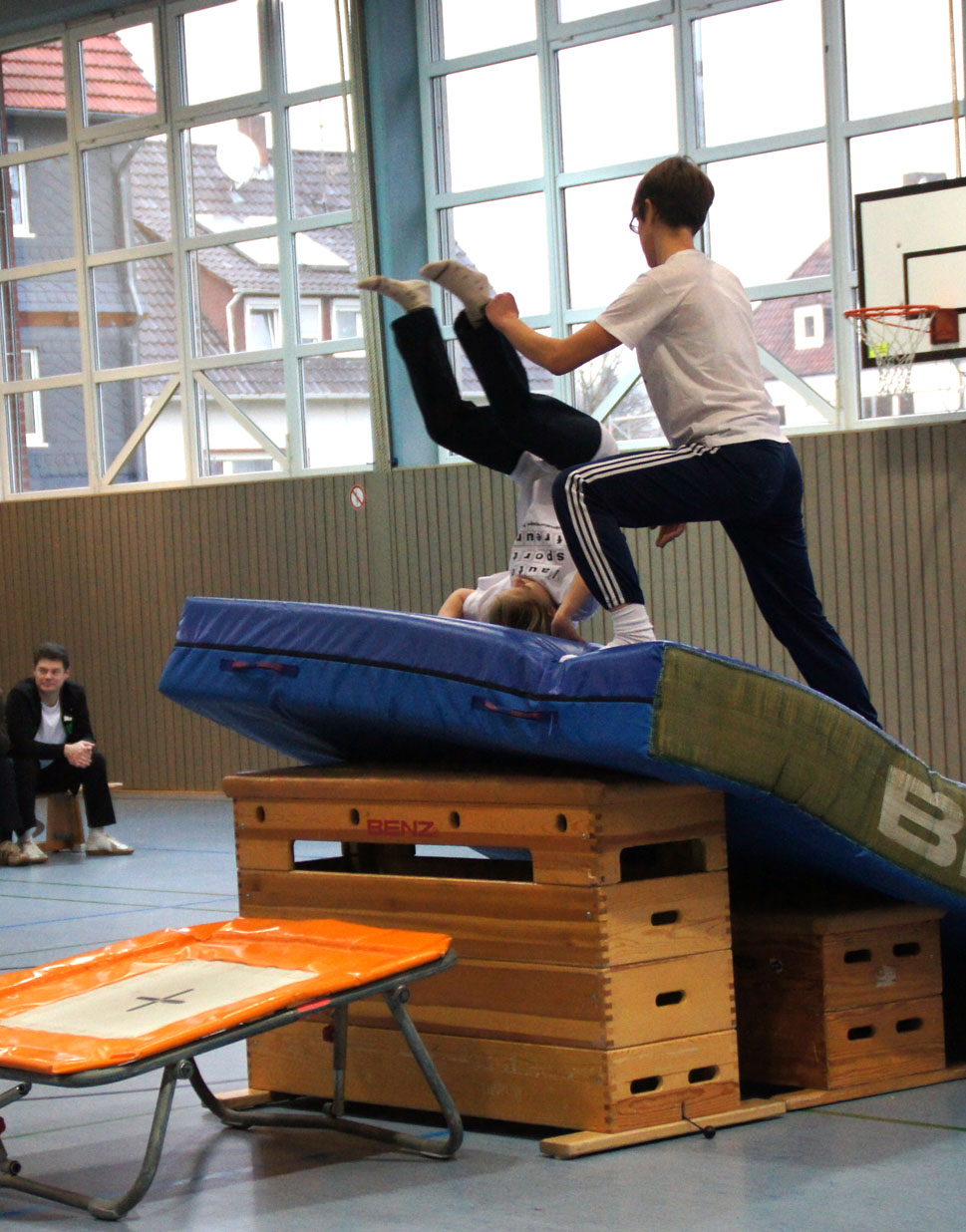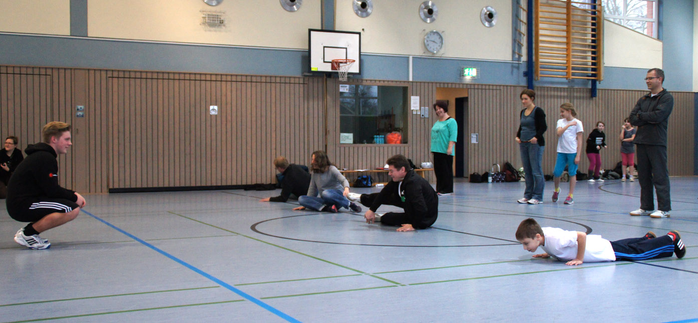 Nach einem kurzen Kennlernspiel und einem Aufwärmtraining nach 'Footballer' Art durften sich die Gäste kurz ausruhen, um den Darbietungen am Minitrampolin und Barren zuzusehen, bevor sie dann im Gefängnisausbruch gegen die 'Elite' antreten mussten. Dabei muss den Gästen sogar der Gewinn (wenn auch im Hundertstelbereich) zugesprochen werden.