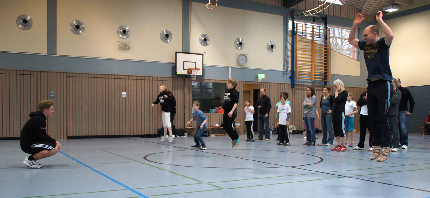 Was als 'Testgruppe' für alle über 9-jährigen an Turnen, Bewegungsspielen und Trendsportarten Interessierten begann, hat sich zu einer fast 15 Mitglieder zählenden Gruppe aus Mädchen und Jungen im Alter von 9-14 Jahren gemausert, die sich wöchentlich trifft.