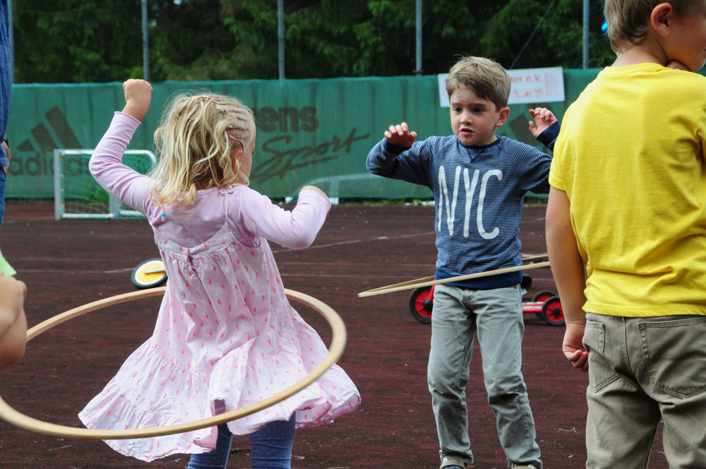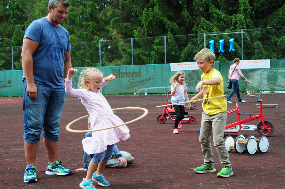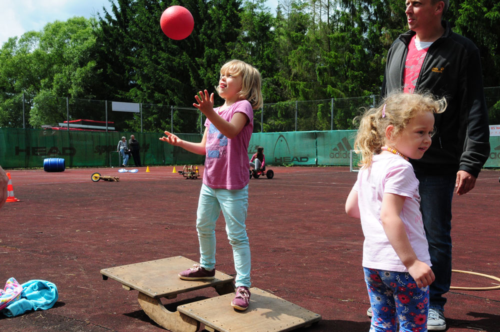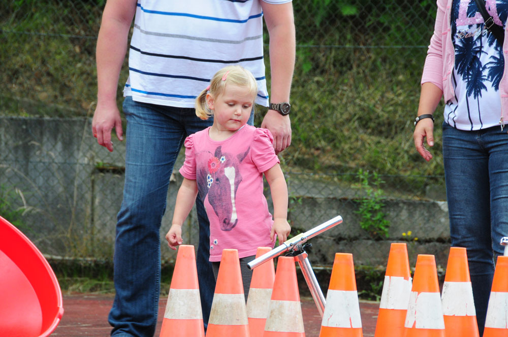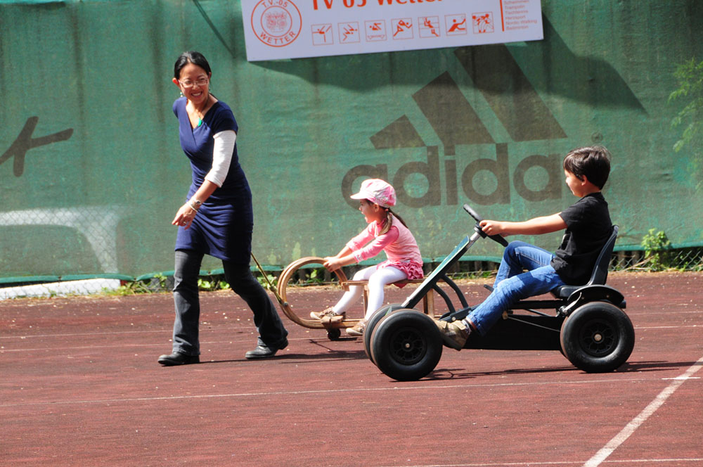 Beim anschließenden Wettbewerb „Klein gegen Groß“ von Andrea Müller ging es mit viel Engagement an 6 Sportstationen um Geschicklichkeit – und um einen Preis zur Belohnung für jeden Teilnehmer. Mit Livemusik der Nordic-Walker „Ackermann & Partner“ ließ sich bei Gegrilltem und Kaffee und Kuchen gemütlich dem bunten Treiben zuschauen.
