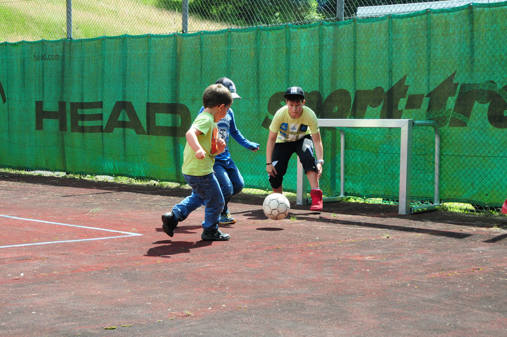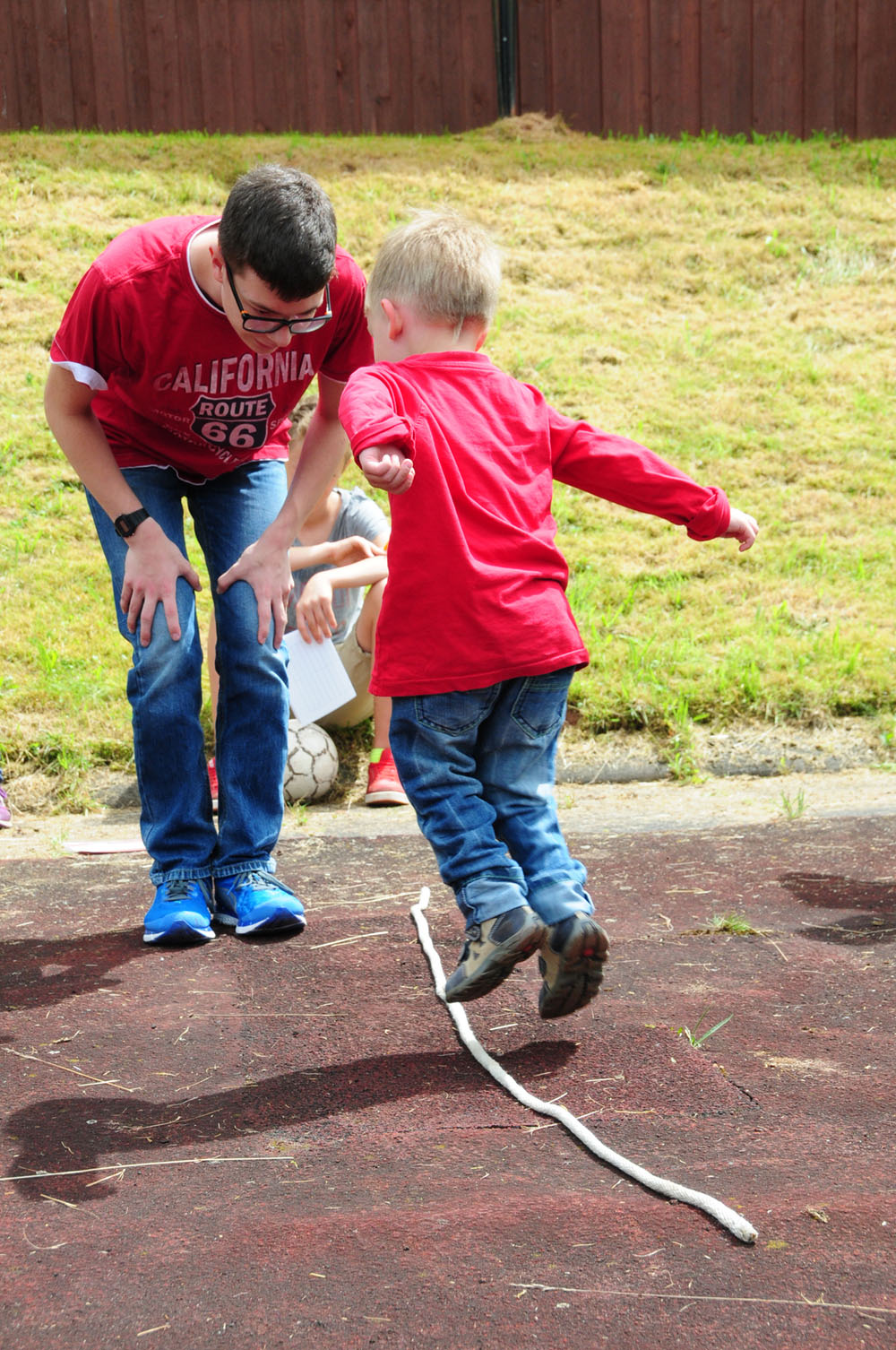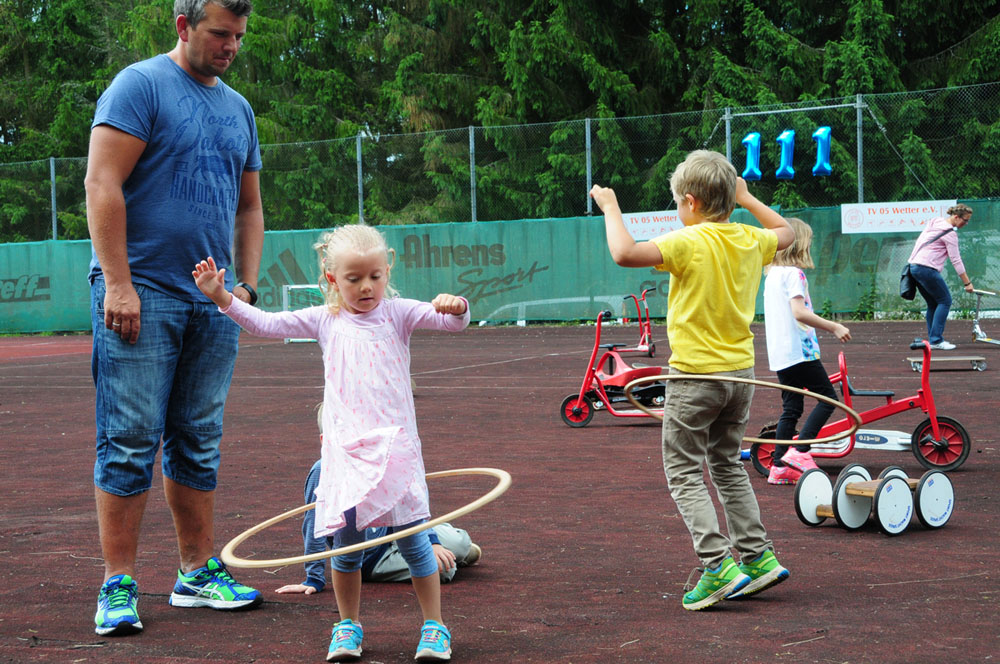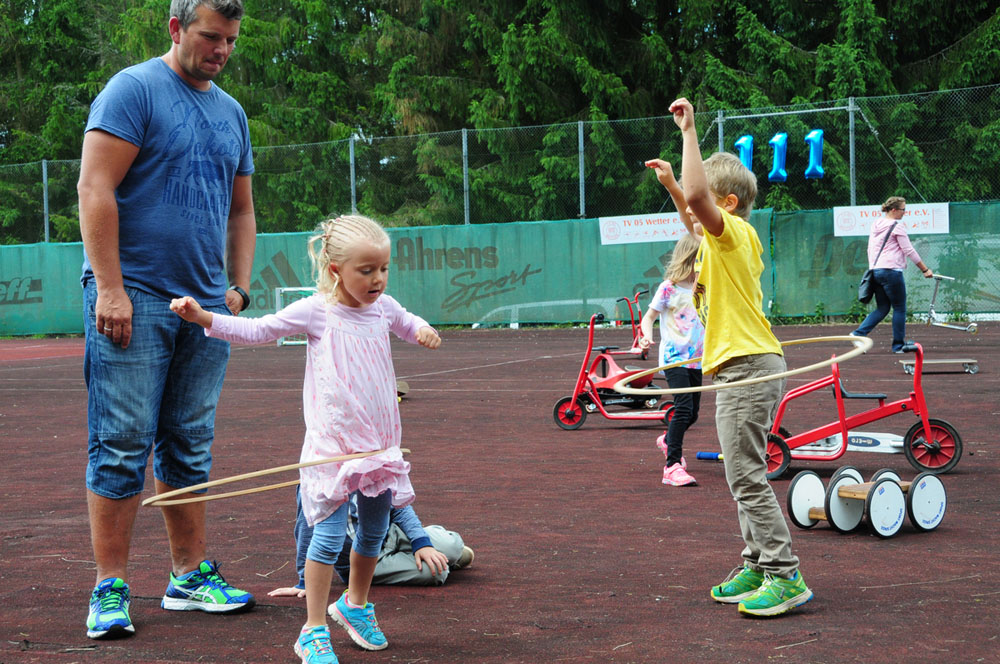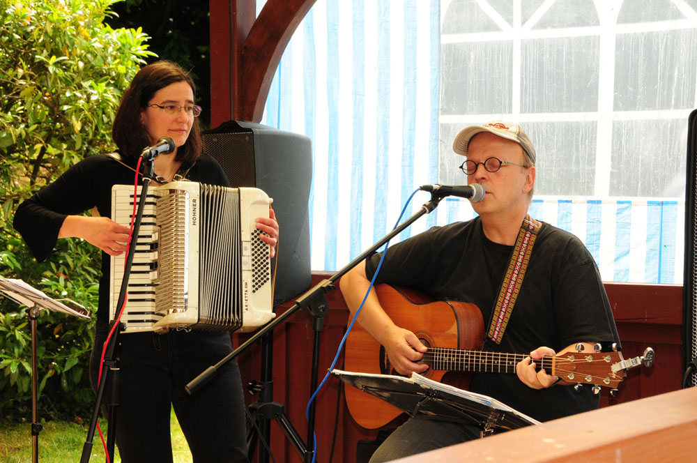 Beim anschließenden Wettbewerb „Klein gegen Groß“ von Andrea Müller ging es mit viel Engagement an 6 Sportstationen um Geschicklichkeit – und um einen Preis zur Belohnung für jeden Teilnehmer. Mit Livemusik der Nordic-Walker „Ackermann & Partner“ ließ sich bei Gegrilltem und Kaffee und Kuchen gemütlich dem bunten Treiben zuschauen.