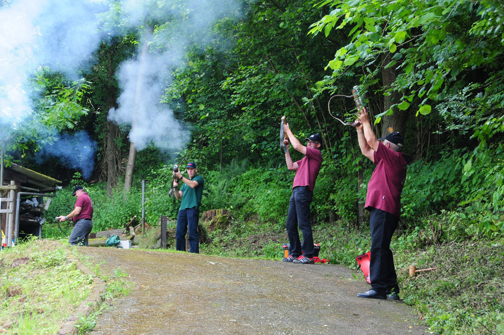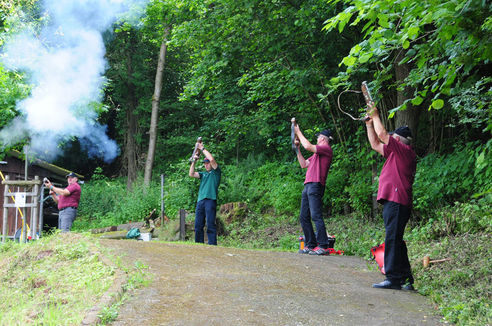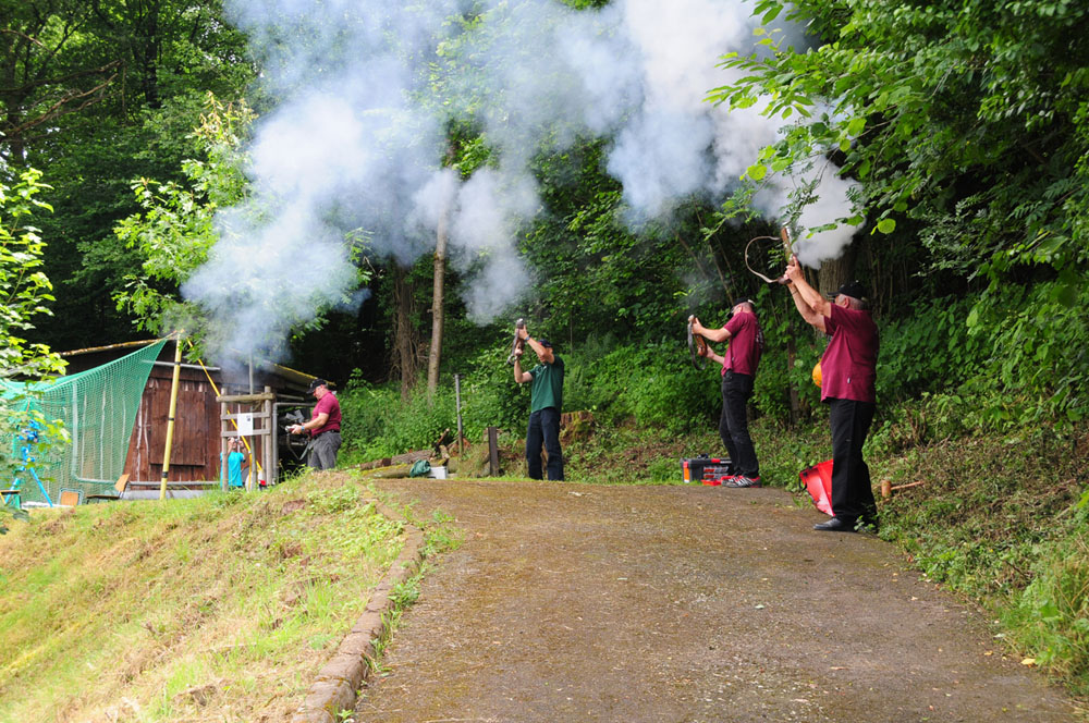 Nach vier Salven Böllerschüssen des Schützenvereins resümierte der Vorsitzende Karl-Heinz Kajewski die bewegte Vereinsgeschichte und bedankte sich bei allen Helfern und Mitgliedern aller 30 Übungsgruppen.