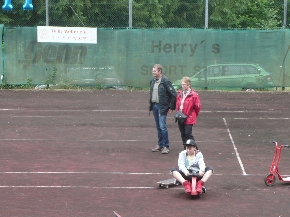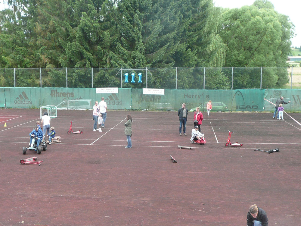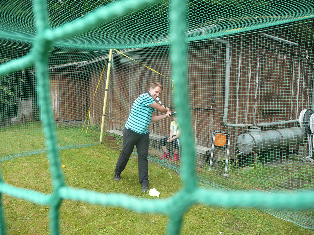 ... vom Kleinkind bis zum verdienten Ehrenmitglied hatten sich bei gutem Wetter am vergangenen Samstag eingefunden. Der Renner für die Kleinen waren die vielen verschiedenen Fahrzeuge, der Renner bei den Größeren war der Baseball-Käfig, in dem man die Bälle, die eine Ballmaschine abschießt, zurückschlagen muss (wenn man trifft).