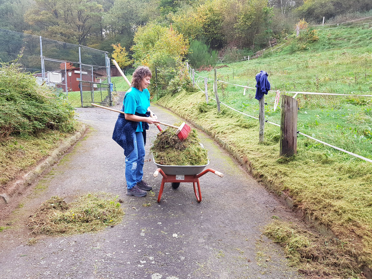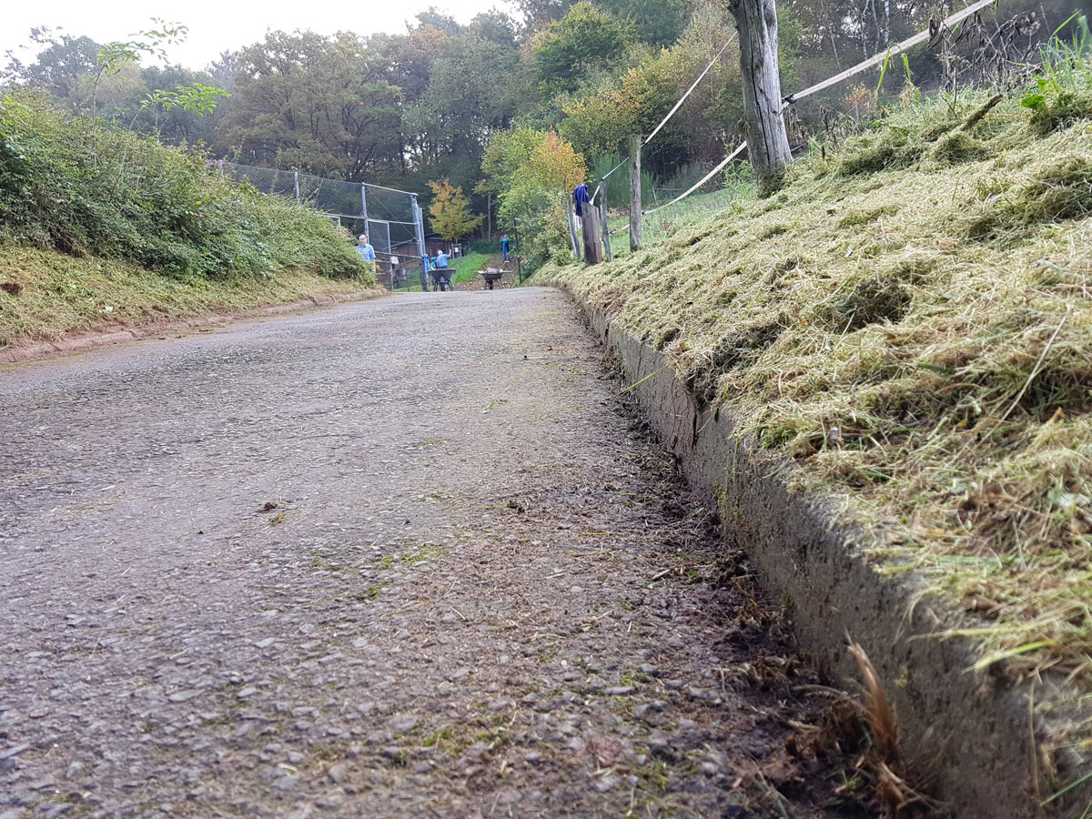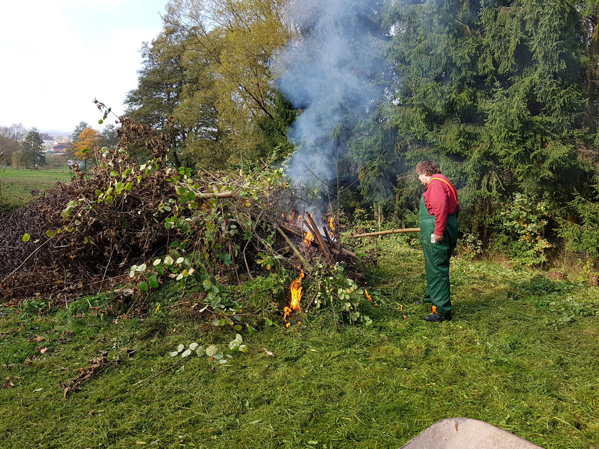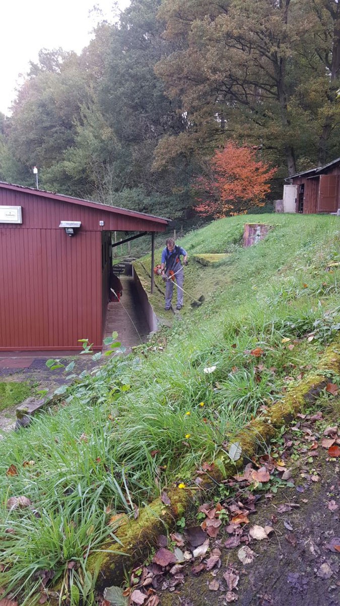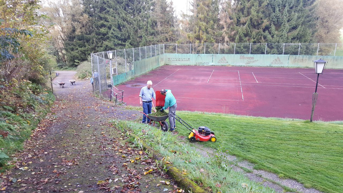 Der Arbeitstrupp nach dem Mähen, Rechen, Hacken, Schneiden, Kehren, Schippen, Abfahren und Abbrennen des Überwuchses rund ums Vereinsheim des TV. |