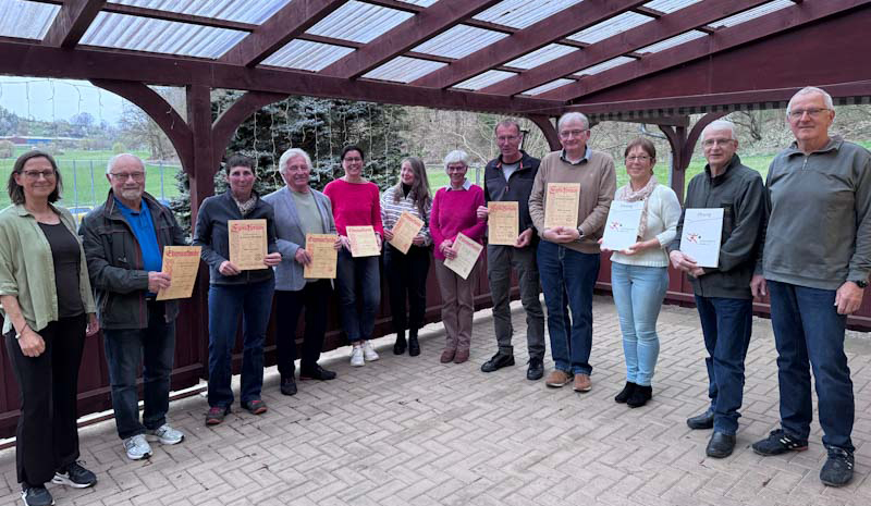 Für 25 Jahre Mitgliedschaft wurden geehrt: Elena Ginard, Mario Haselbauer, Harald Junk, Sven und David Kepper, Armin Leisge, Tobias-Michael Wagner, Bernd Wick, Kerstin Muth, Lucien Gerkau, Friederike und Daniel Palicki, Oliver und Sarah Ziegler.